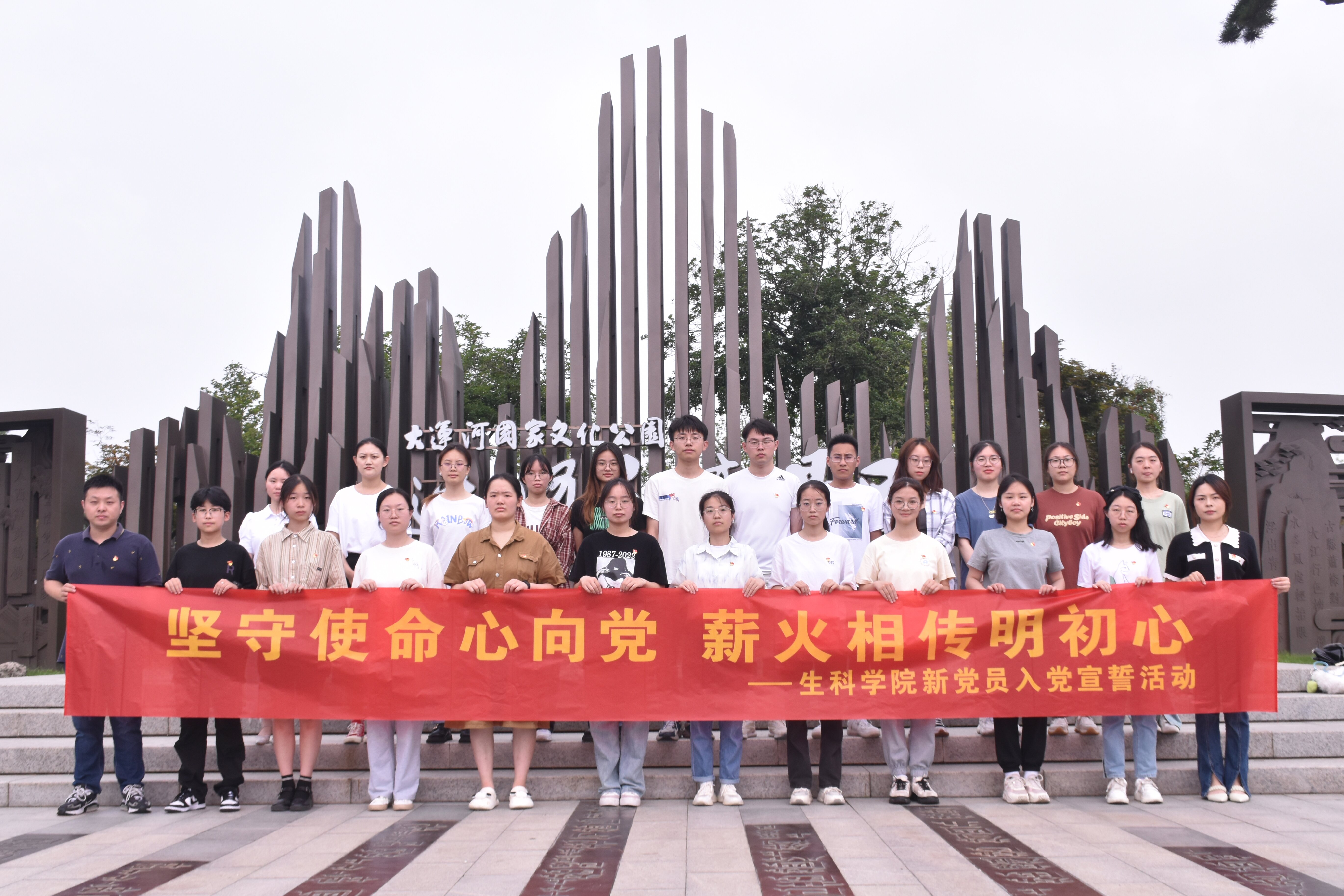 7月1日建党节,为了引导广大新老党员坚定理想信念,强化责任担当,我院师生党员来到三湾湿地公园,开展“坚守使命心向党,薪火相传明初心”新党员入党宣誓活动,在大运河畔,巧设“实景党课”。