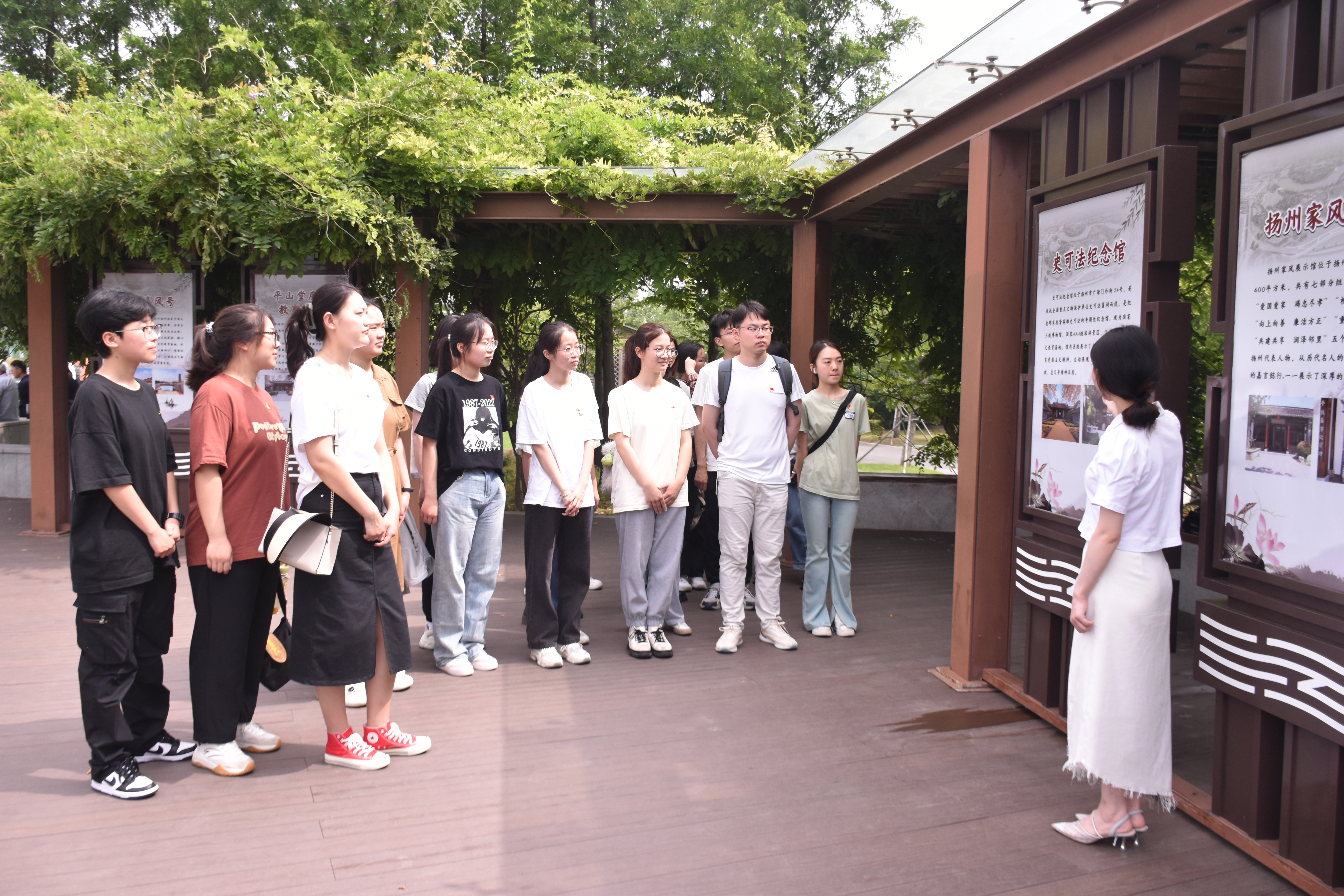 随后,学院本科生第二党支部书记叶春梅为预备党员佩戴党徽。宣誓活动结束后,全体党员研学扬州市三湾湿地公园,在亲身体悟中感受运河文化。过程中,学院党员代表介绍了运河三湾如何从生态环境严重破坏到如今蜕变为风清水秀的湿地公园的故事,用三湾的治理之路深刻讲解了生态文明的重要性,进一步启发我院广大党员在感悟中传承历史文脉,励志广大学子扎实专业学习,为生态保护事业贡献自己的青春力量。