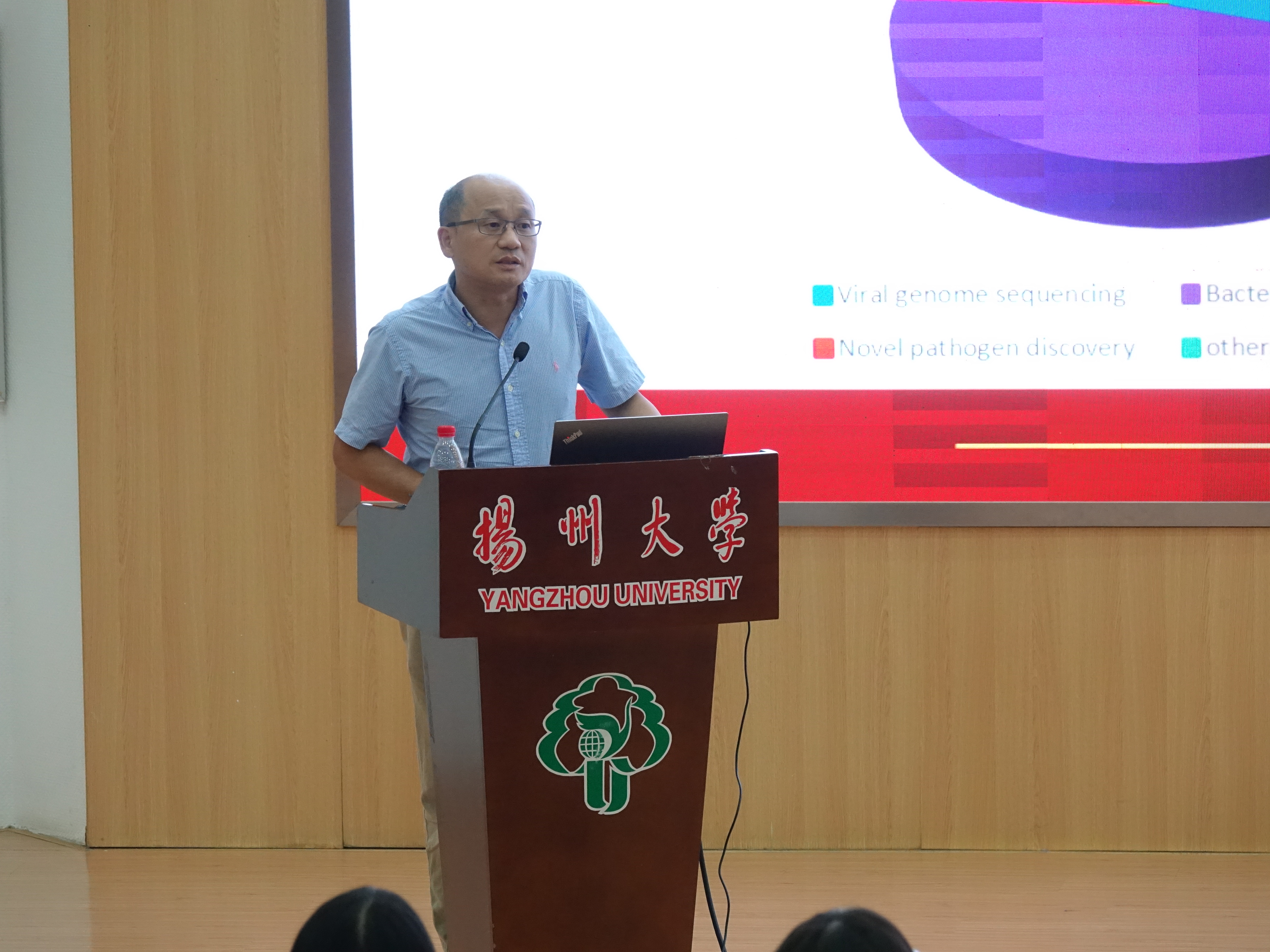 在开幕致辞中,黄金林指出,随着科学的发展的不断深入,交叉学科领域越来越受到关注和重视,希望与会师生借助本次论坛,碰撞思维火花,获取学术灵感。会上,李干武教授以“Applications of Next-generation Sequencing Technology in Veterinary Diagnostic Medicine”为题,根据乳腺炎的肺炎克雷伯菌的全基因组表征,从群体基因组学、基因组岛、质粒三个方面介绍了下一代测序技术在诊断医学领域中的应用。谢维教授带来题为“科学问题的凝练与模式生物的选择-以自闭症发病机制研究为例”的报告,以自闭症研究中模式生物的选择为例讲述了科学问题凝练过程,以自闭症调控基因入手,阐述了细胞粘附分子参与突触形成和递质传递的分子机制。