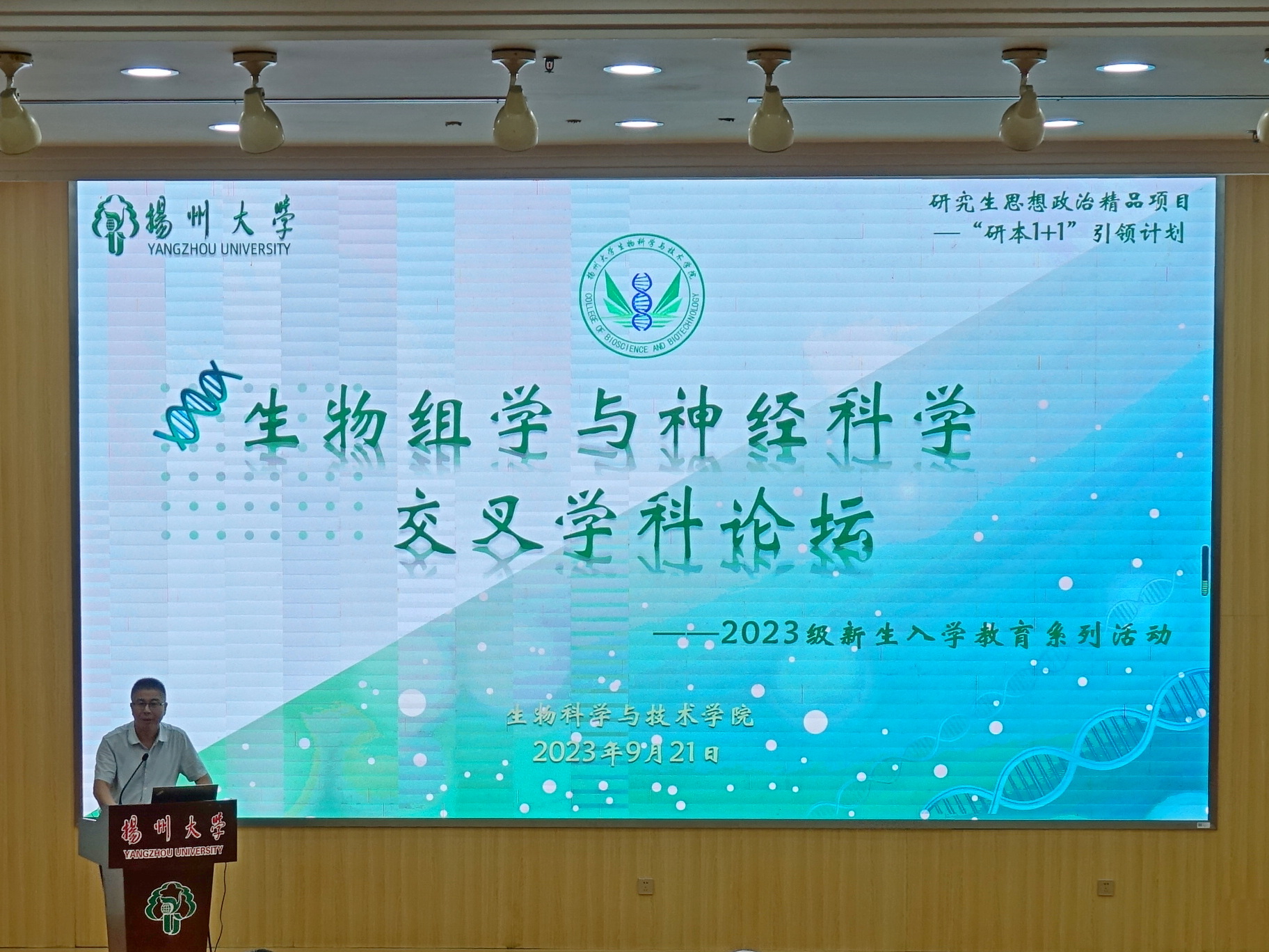 2023年9月21日,我院在荷花池校区逸夫图书馆报告厅举办“生物组学与神经科学”交叉学科论,美国爱荷华州立大学李干武教授、东南大学谢维教授应邀作学术报告,论坛由黄金林院长主持,学院教师、研究生代表近300人参加了本次活动。
