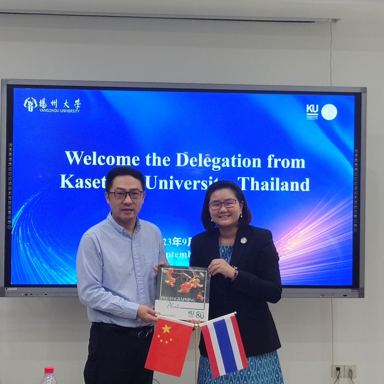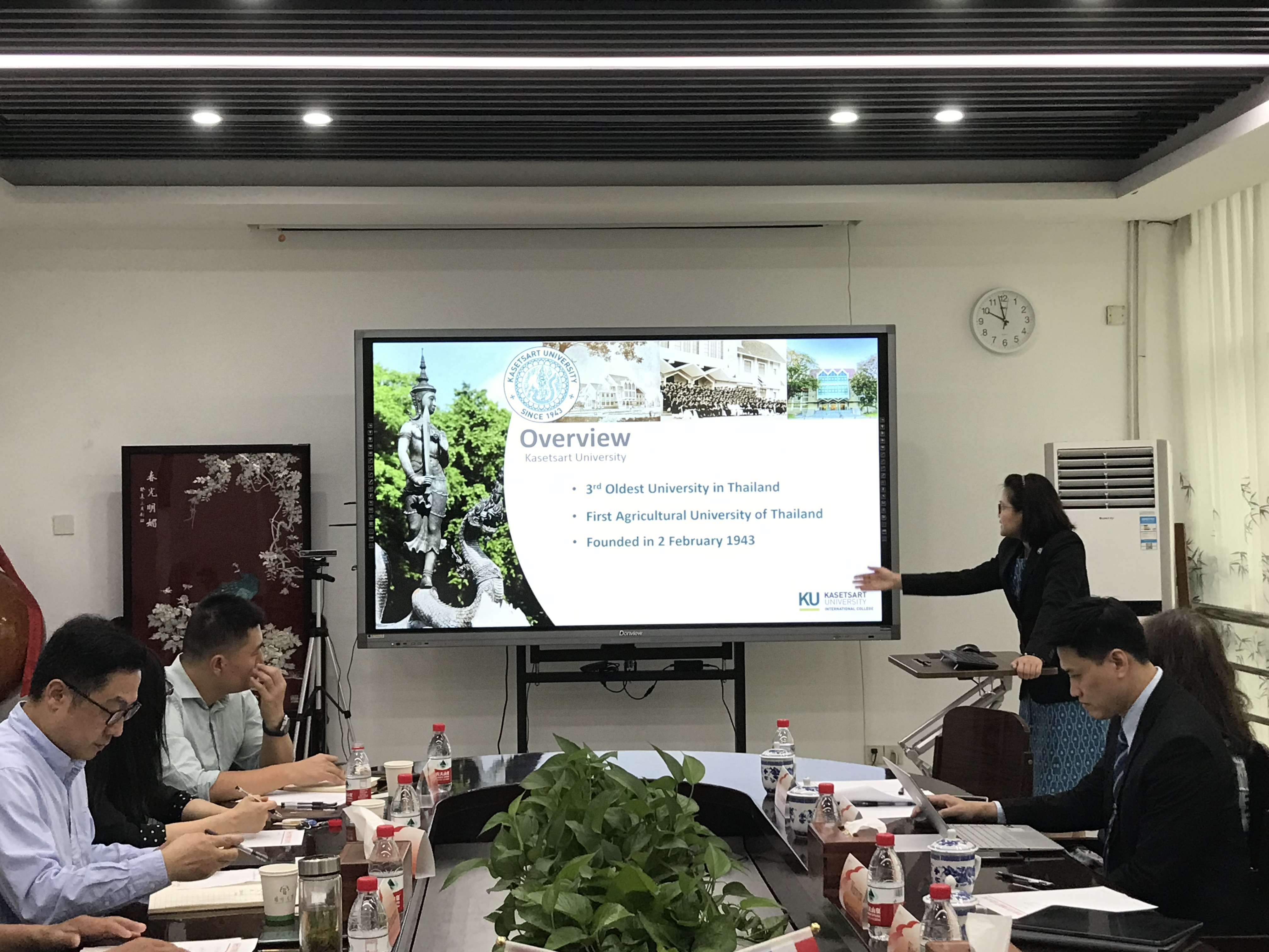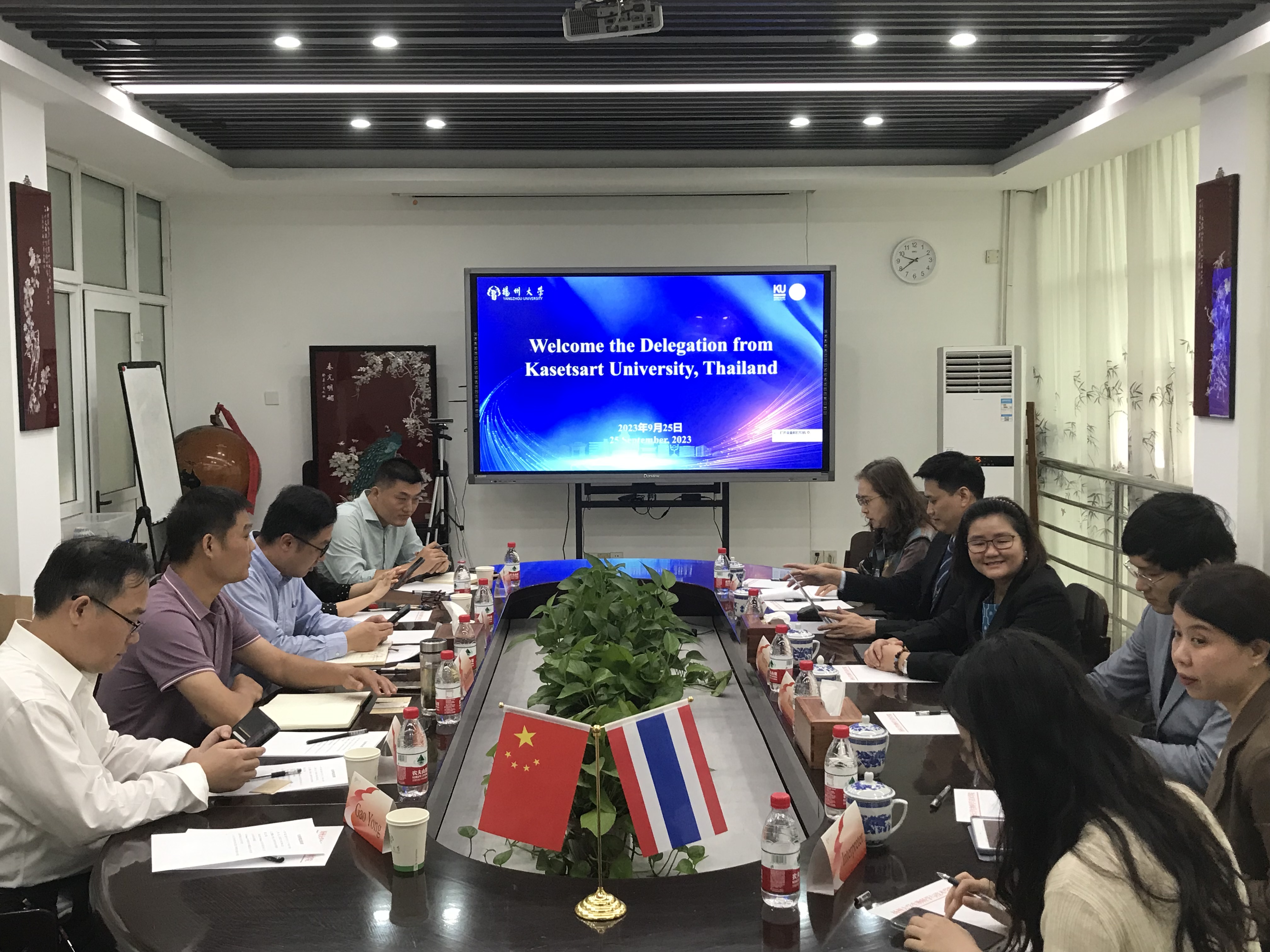 会上,陈祥首先对泰国农业大学代表团的到来表示热烈欢迎,会谈中,双方简要介绍了学校及学院的历史沿革、学科建设、教学成果等方面的基本情况,重点阐述了各自在农业科学、生物技术等领域的研究优势。随后,双方针对生物科学相关专业建设及国际合作与交流现状进行了重点交流和积极讨论,就国际化人才联合培养形式,特别对本科生联合开展短期校际交流访学进行了深入探讨。此外,在教师科研协作方面,双方表示将充分发挥各自在教学和研究方面的优势,探索教师科研协作新途径,共同推进农业科学、生物技术等领域的科研合作。双方形成共识,希望在未来开展深入的合作与资源共享,促进双方的教育国际化进程。