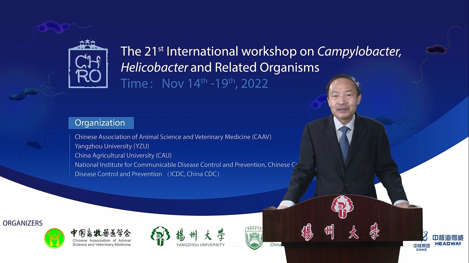 11月14日至19日,由扬州大学、中国畜牧兽医学会、中国农业大学以及中国疾病预防控制中心共同主办的第21届弯曲菌、螺杆菌及相关微生物国际研讨会(The 21st International Workshop onCampylobacter,Helicobacterand Related Organisms, CHRO 2022)在我校召开,校党委书记焦新安出席研讨会并致开幕词。