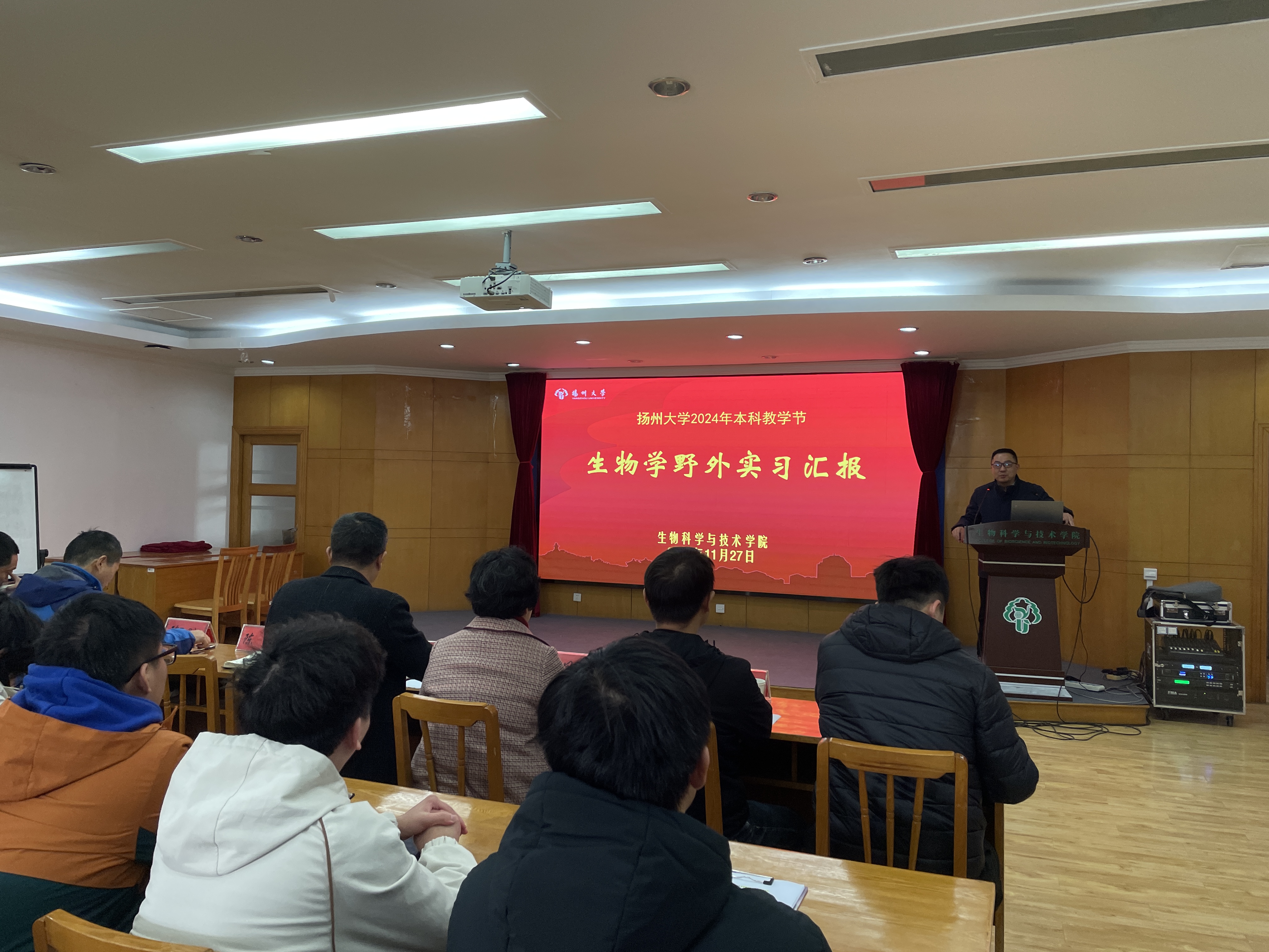 11月27日下午,我院在二楼报告厅举行扬州大学2024年本科教学节系列活动-生物科学(师范)专业野外实习成果汇报会。陈祥副院长、生科系教工党支部书记丁海东、生科系主任陈刚、实习带队教师和生科专业2023级全体学生出席了会议。汇报会由陈刚老师主持。