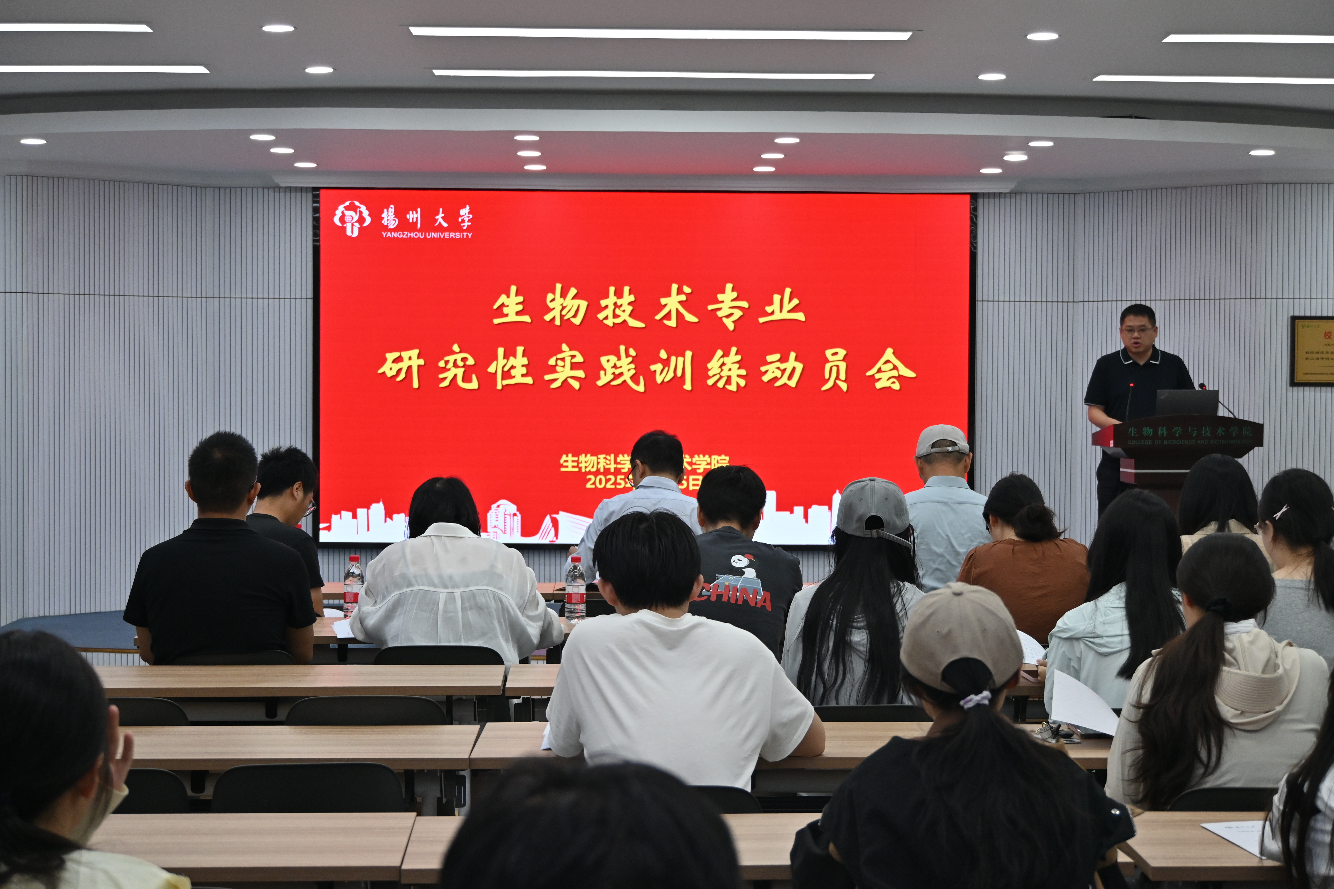 6月25日上午9:00,我院于二楼报告厅举办了生物技术专业研究性实践训练动员会议。本次会议由生技系主任吴健老师主持,副院长陈祥、全体带队老师及23级生物技术专业同学参加了会议。