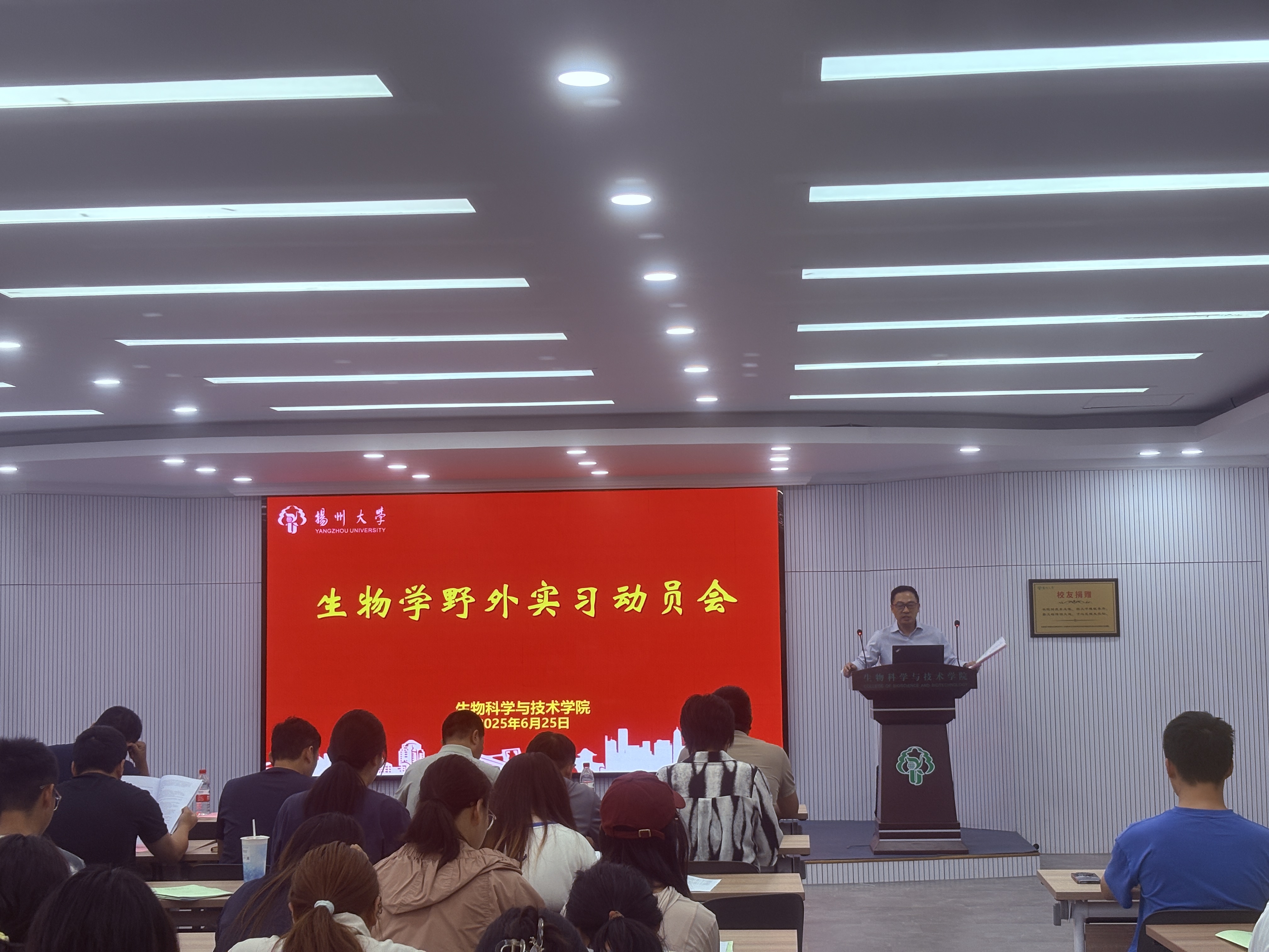 6月25日上午,我院在8号楼二楼报告厅召开了生物科学(师范)专业生物学野外实习动员大会。副院长陈祥、全体带队教师、2024级生物科学(师范)专业及部分2023级生物技术专业、2024级强基班学生参加了会议。会议由生物科学系支部书记丁海东主持。