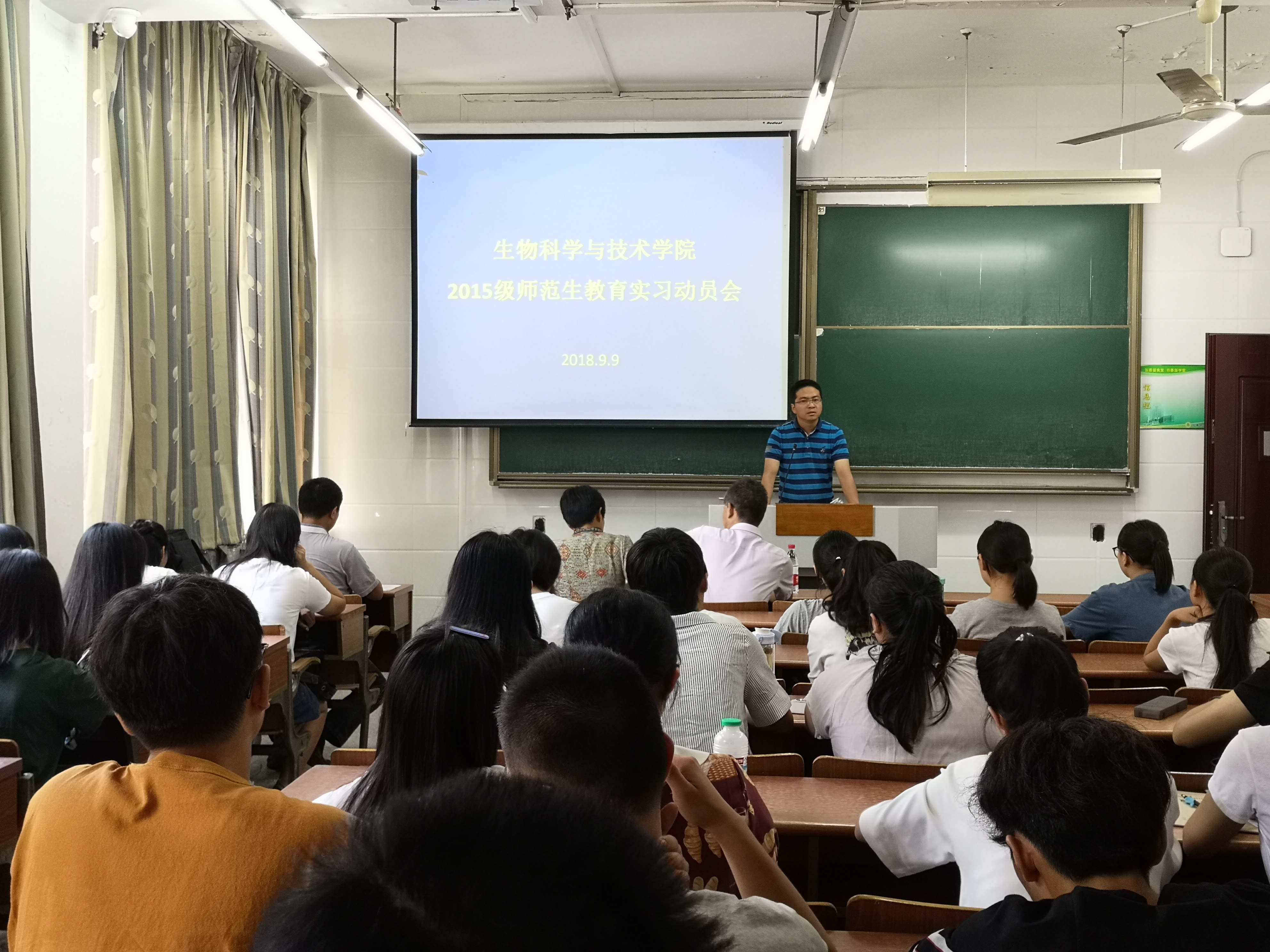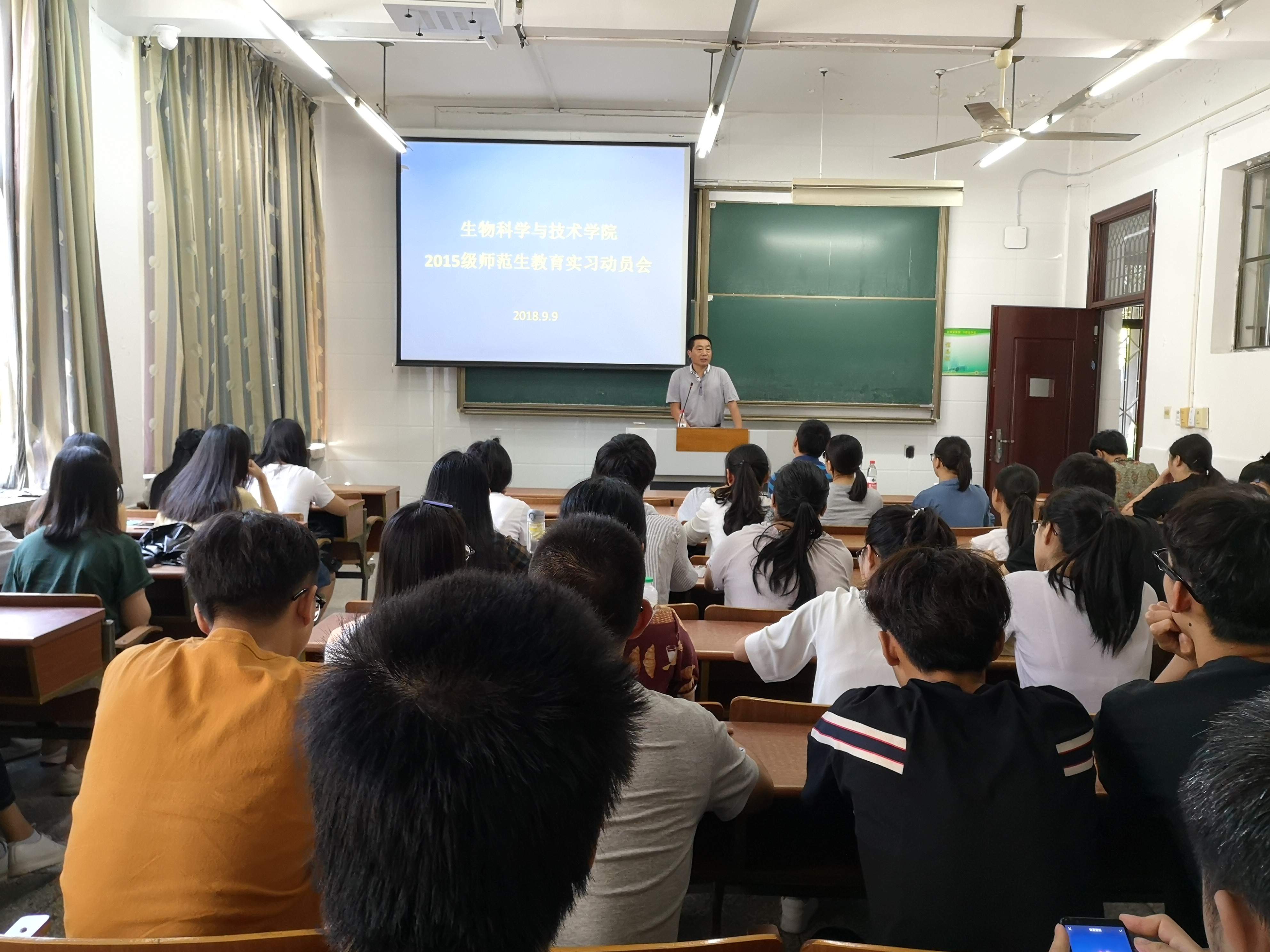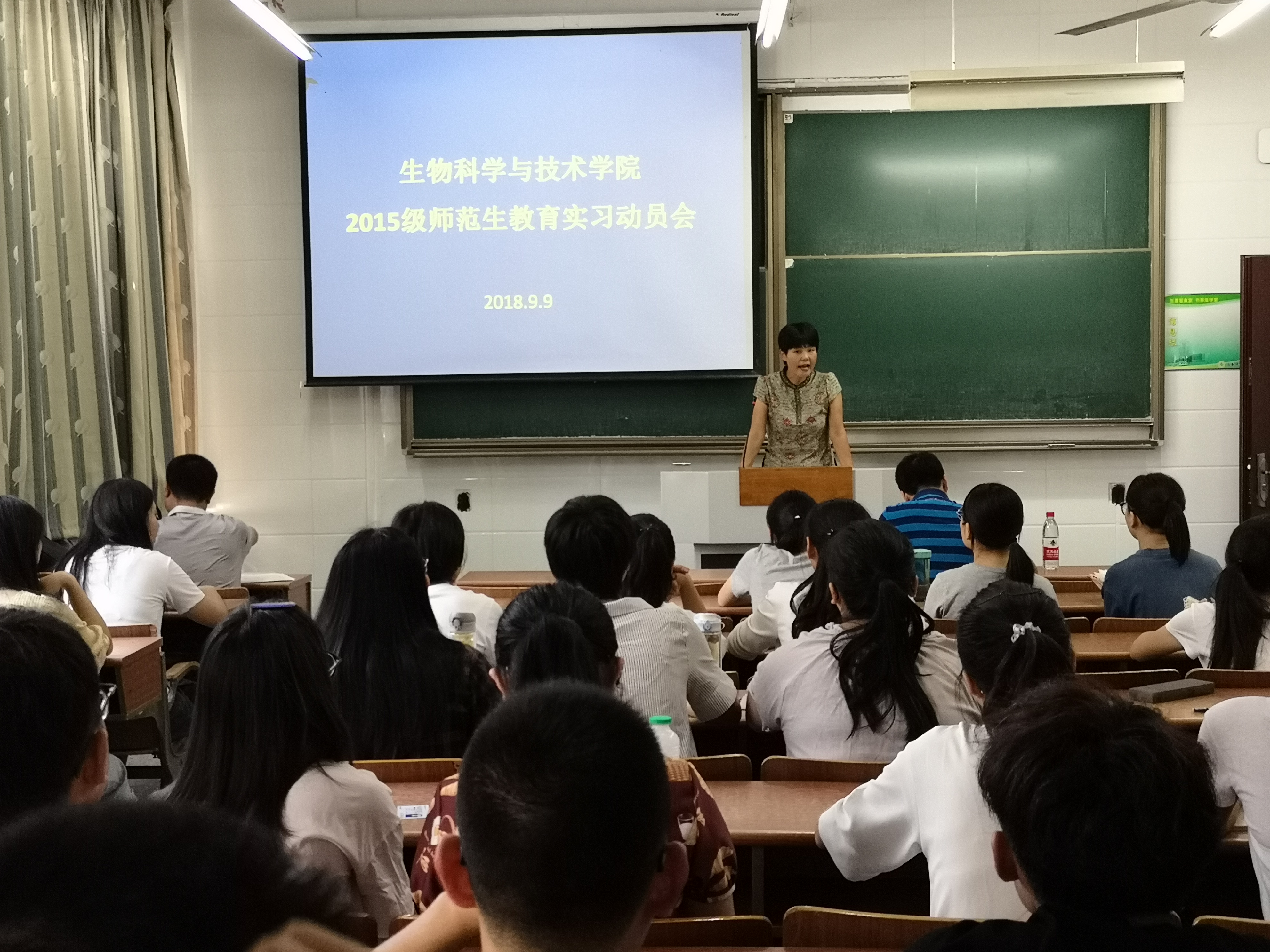 9月9日上午,我院在23号楼109教室召开2019届师范生教育实习动员会,重点部署教育实习期间的工作安排、纪律及安全事项。会议由中学生物学教育教研室主任吴晓霞老师主持,学院党委副书记姚丰华出席会议,动物学教研室主任李世平及全体15级师范类学生参会。
