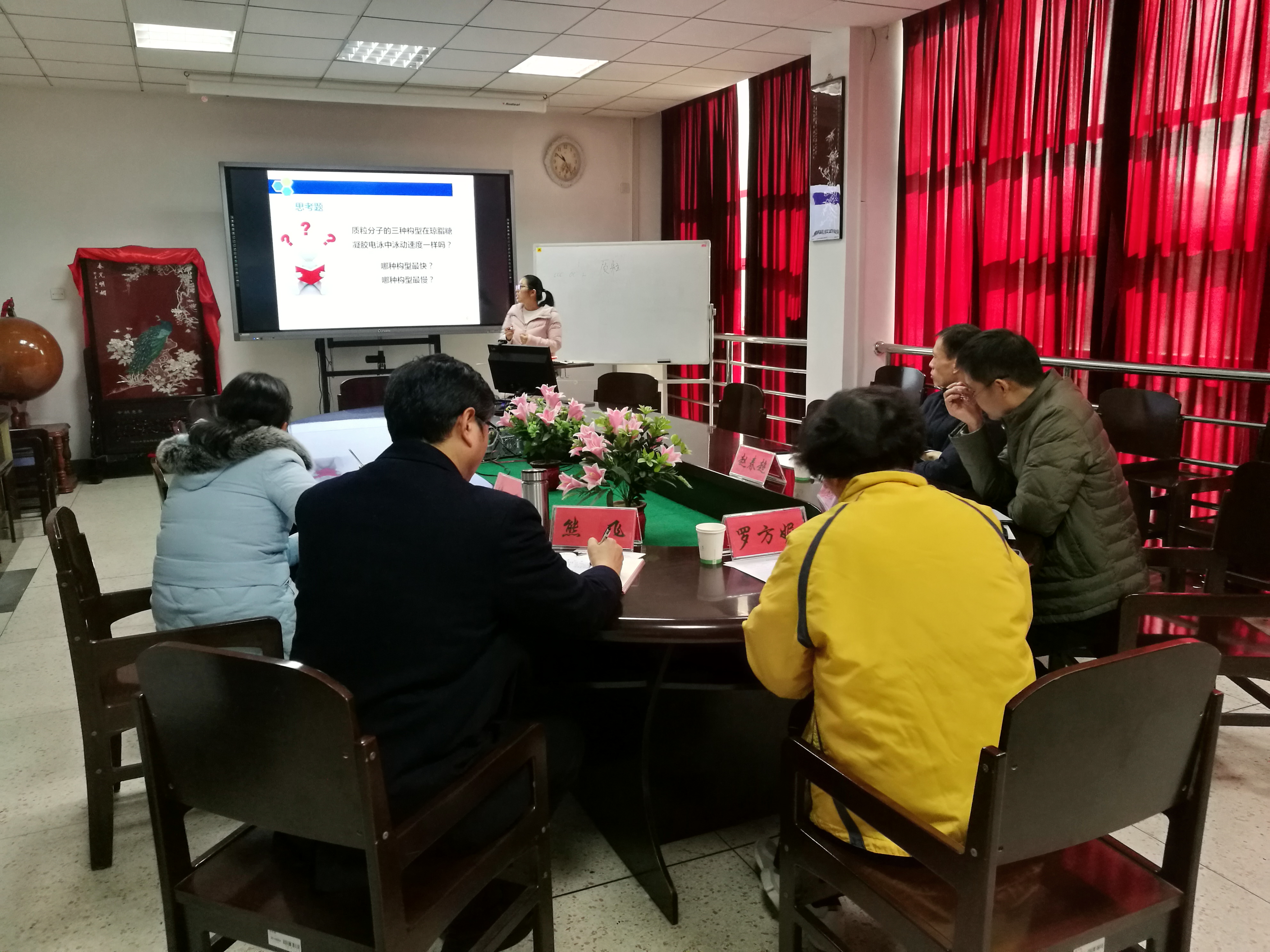 为提升我院新教师教学水平,根据教务处安排,2019年12月4日,我院在院三楼会议室进行新教师汇报课活动。此次汇报对象为2018年度新进的4名青年教师。活动由熊飞副院长主持,校督导罗方妮老师莅临指导,院教学委员会成员、院督导组成员参加了此次活动。此外,部分青年教师进行观摩学习。专家组对青年教师汇报讲课所存在的问题给出了详细的意见和建议,希望他们找到问题和差距,进一步努力学习与成长,早日成为一名优秀的教师。