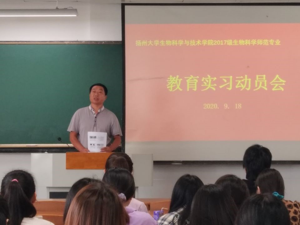 2020年9月18日,我院在23#517教室召开了2017级生物科学(师范)专业实习培训专题讲座暨教育实习动员会,本次会议邀请新华中学生物学特级教师蒋选荣老师开展专题讲座,生科系主任陈刚老师、李世平、吴晓霞、徐小颖等教育实习指导老师及2017级生物科学(师范)专业学生参加了会议。