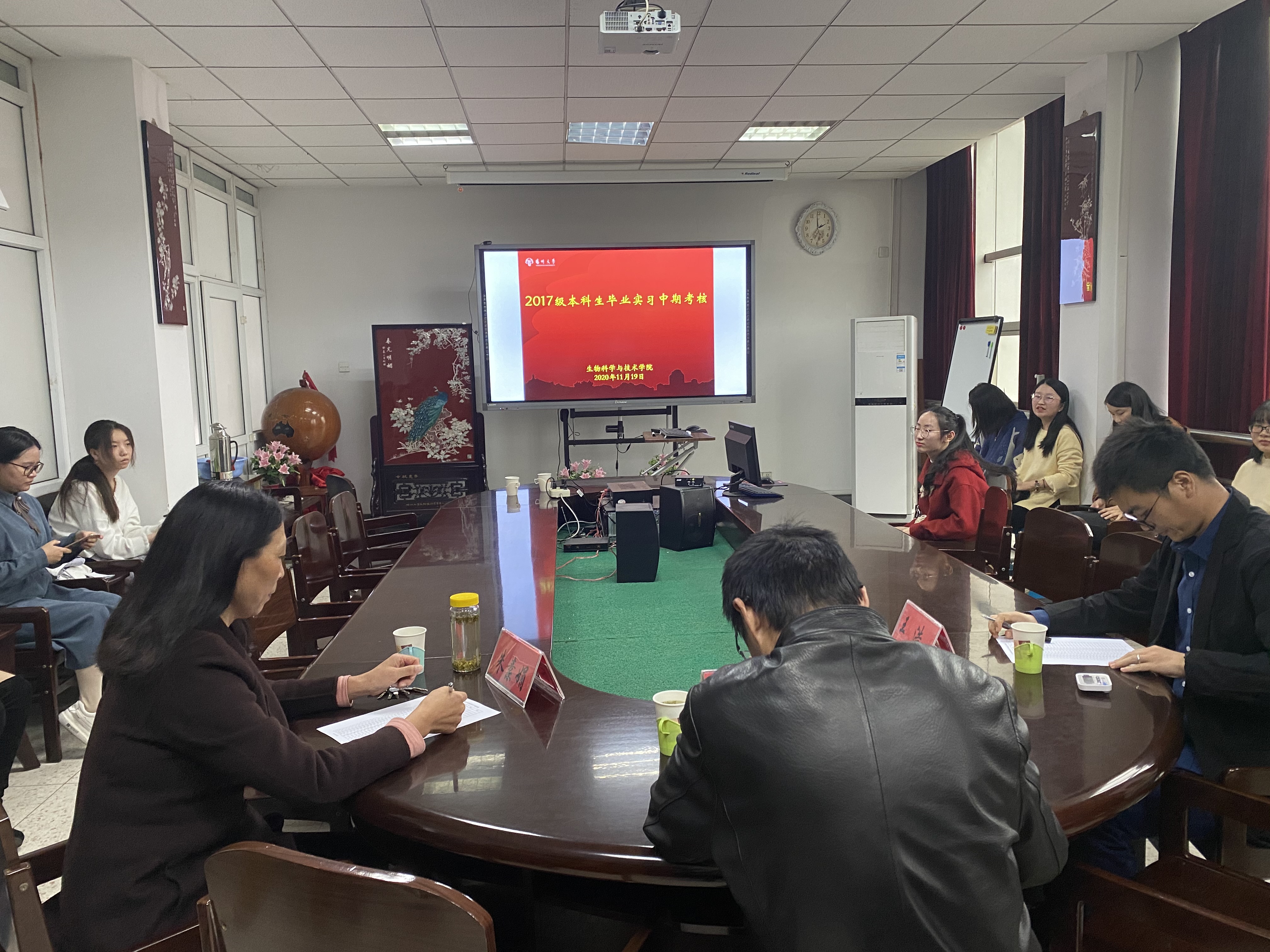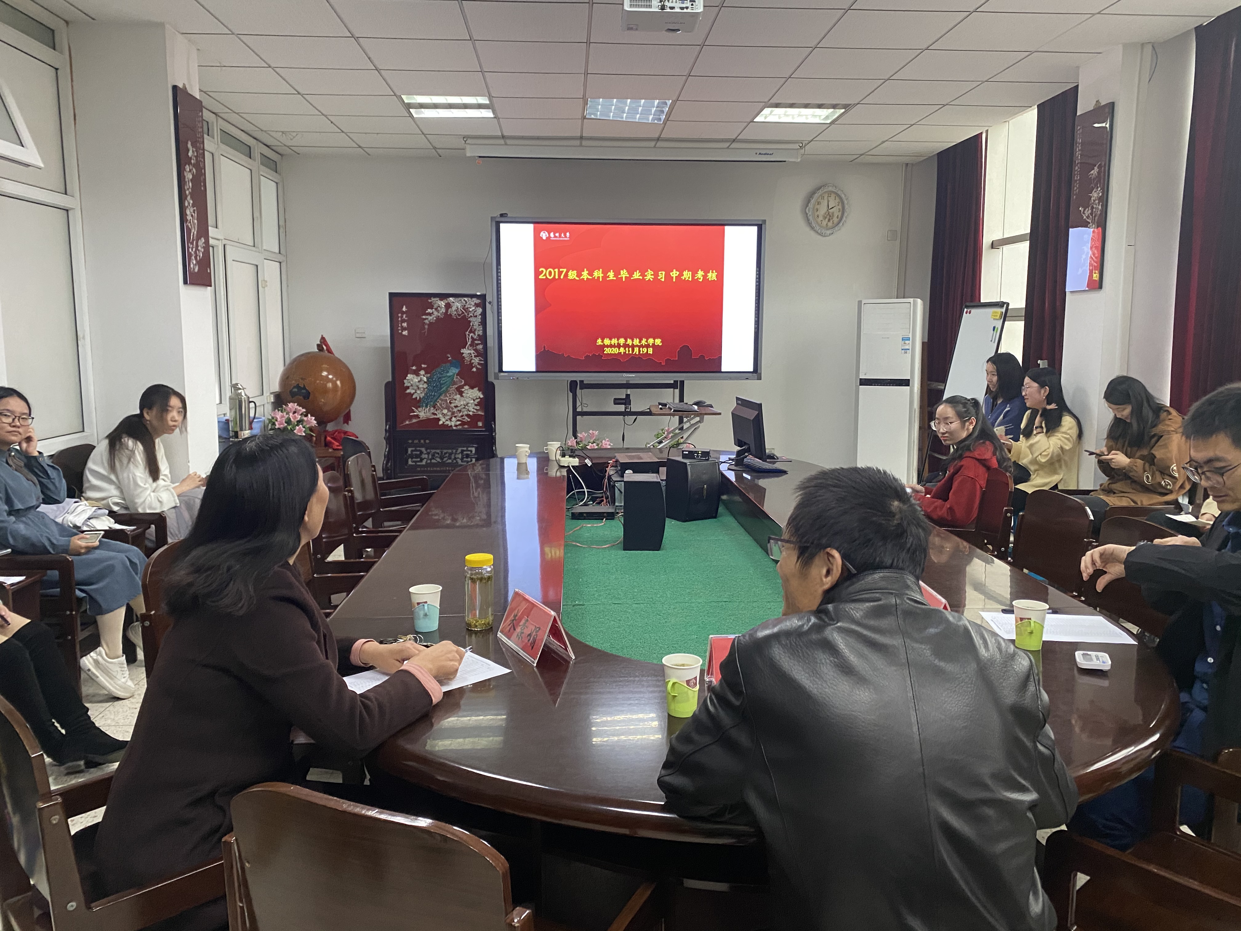 11月19日下午,学院对2017级本科生毕业实习进行中期考核。本次考核分四组进行,生物技术、生物工程专业学生从论文选题、研究进展、试验结果、下一步试验计划等方面进行汇报,生物科学(师范)专业学生则对教育实习的内容、收获体会、下一步工作等进行汇报,考核小组通过提问、审查毕业生实习手册等给予最终评分结果。