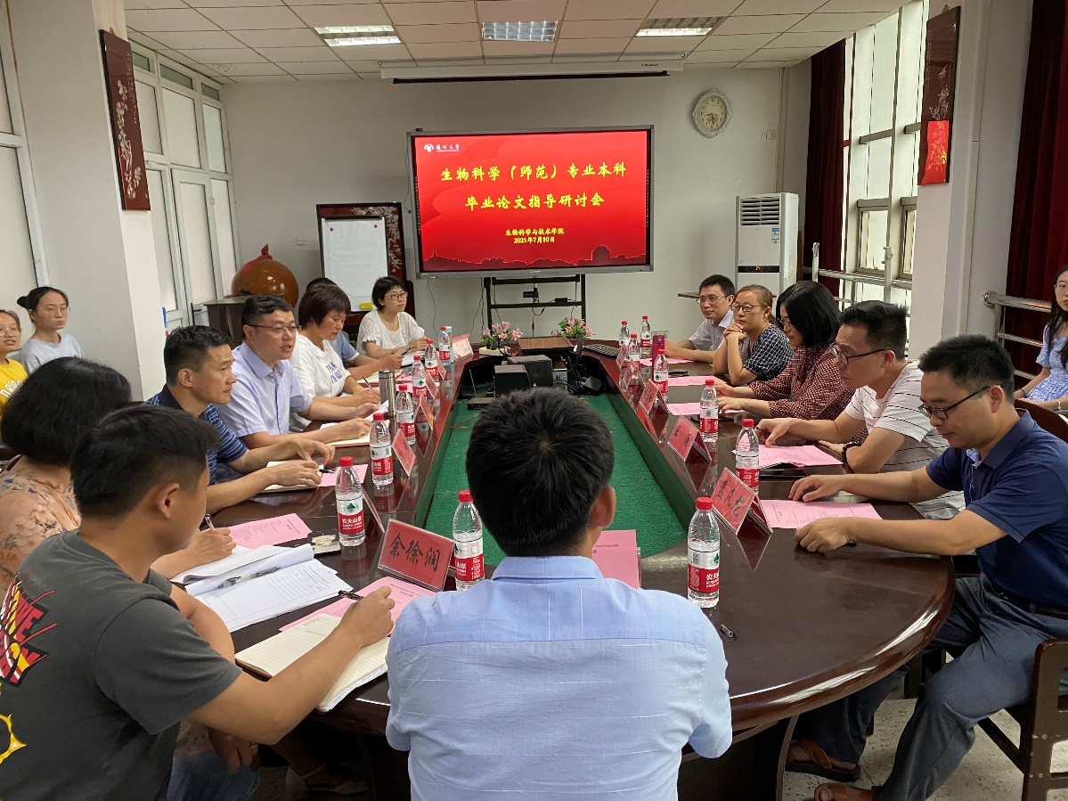 2021年7月10日下午,我院在三楼会议室举办生物科学(师范)专业本科毕业论文指导研讨会。本次研讨会由熊飞副院长主持,来自中学教学一线的五位校外指导老师以及我院生科系主任陈刚老师、生物学教研室吴晓霞老师、副主任李世平老师及相关指导老师、2018级教育类毕业实习学生共同参会。