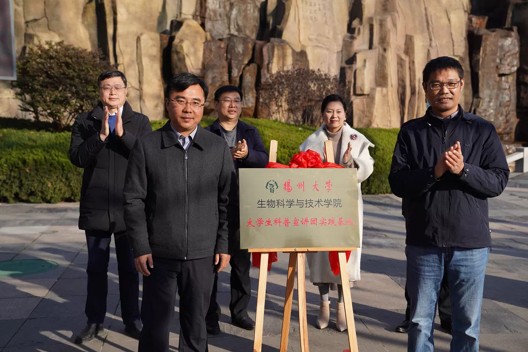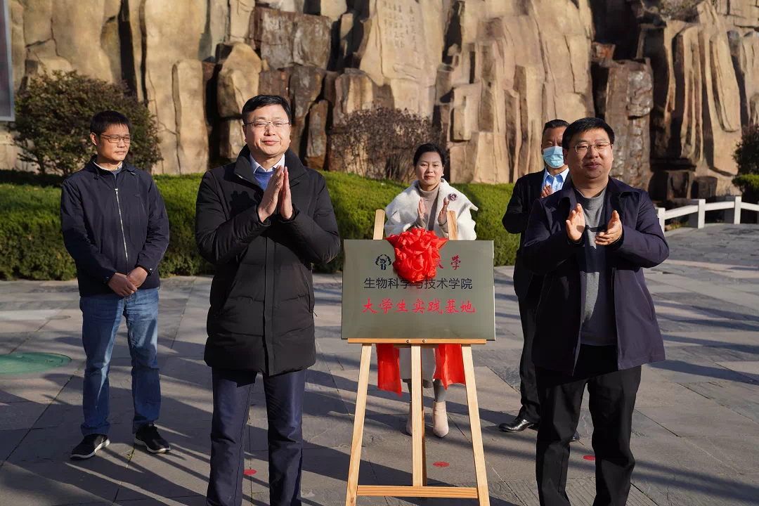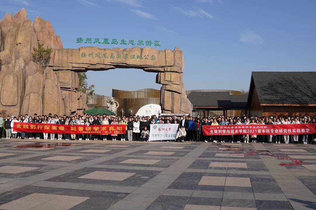 12月19日,我院教学院长熊飞、党委副书记廖善光带领全体大一新生以及植物考察团和青禾宣讲团成员前往凤凰岛国家湿地生态公园,开展实践性教学活动,并举行了“扬州大学生物科学与技术学院实践基地”和“扬州大学生物科学与技术学院大学生科普宣讲团实践基地”揭牌仪式。