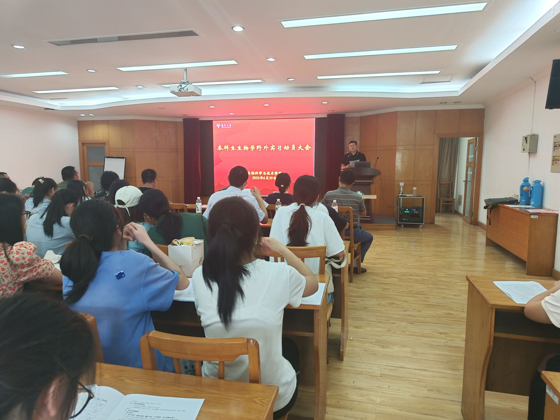 6月29日上午,我院在二楼报告厅召开2022年本科生生物学野外实习动员大会。教学院长熊飞、系主任、团委老师、教学办老师、全体野外实习指导老师以及2021级、2020级及2019级部分生物科学专业本科生参加会议。动员大会由系主任陈刚主持。