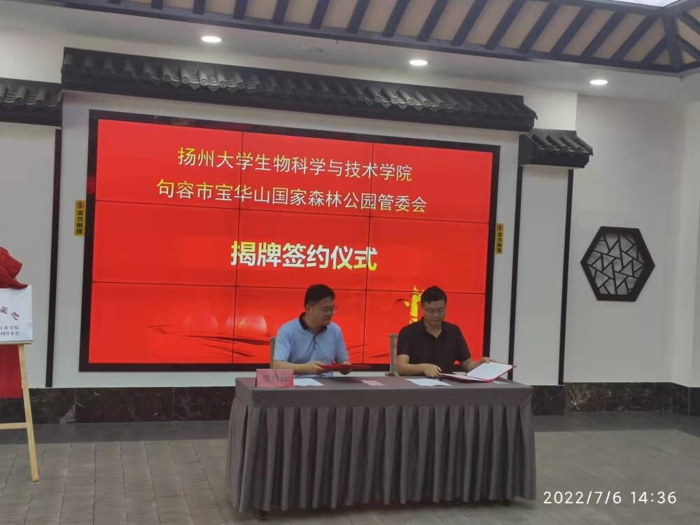 7月6日,扬州大学生物科学与技术学院教研实习基地揭牌仪式在句容市宝华山国家森林公园游客中心举行。
