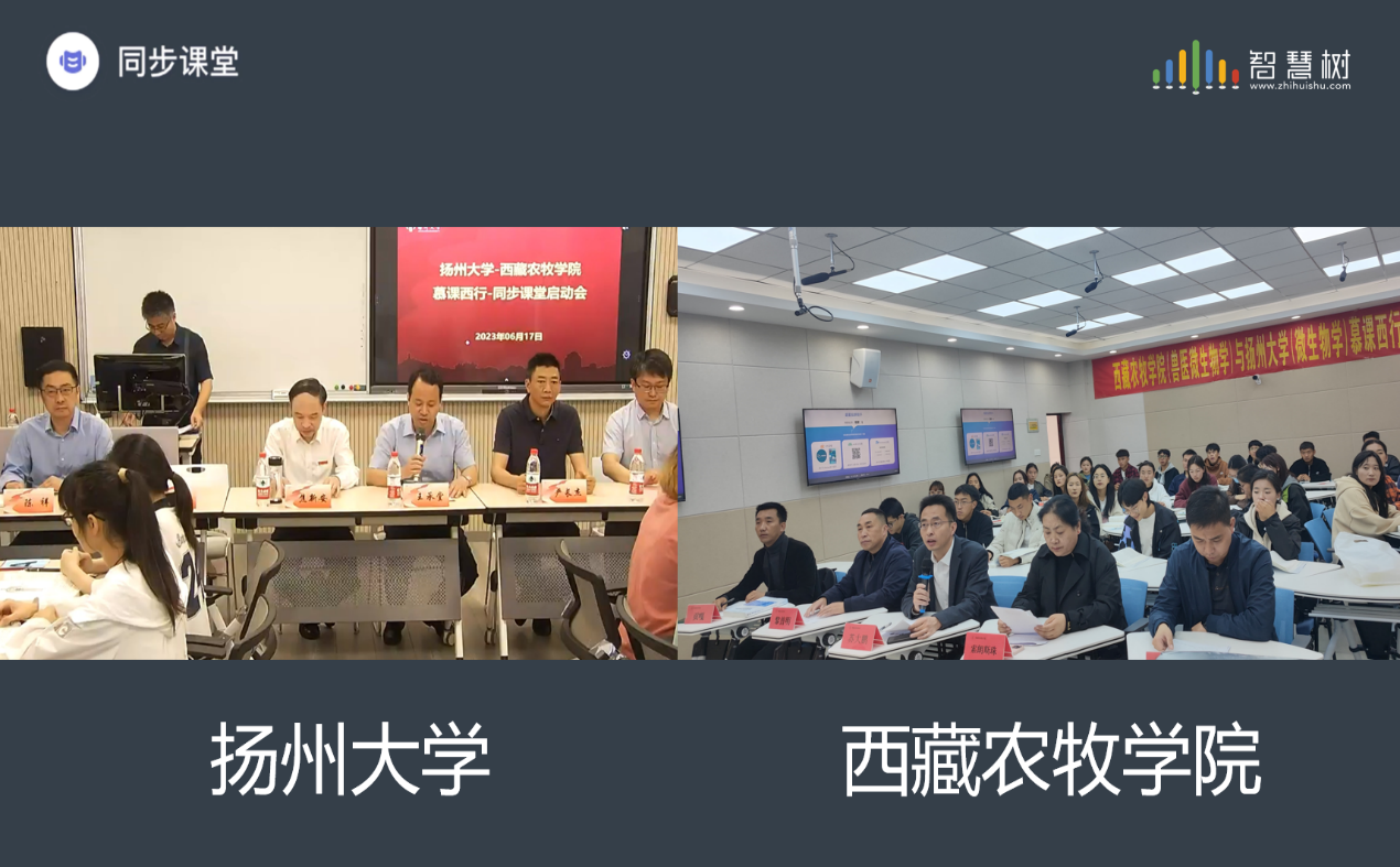 为积极响应教育部高教司“慕课西行”号召,深入推进信息化教学手段和教学方法改革创新,2023年6月17日上午,扬州大学与西藏农牧学院“慕课西行”—同步课堂启动仪式与同步课堂教学活动顺利开展。本次课堂借助智慧树在线平台及硬件设备,实现两校师生隔空互动、两校课堂直播同步进行。