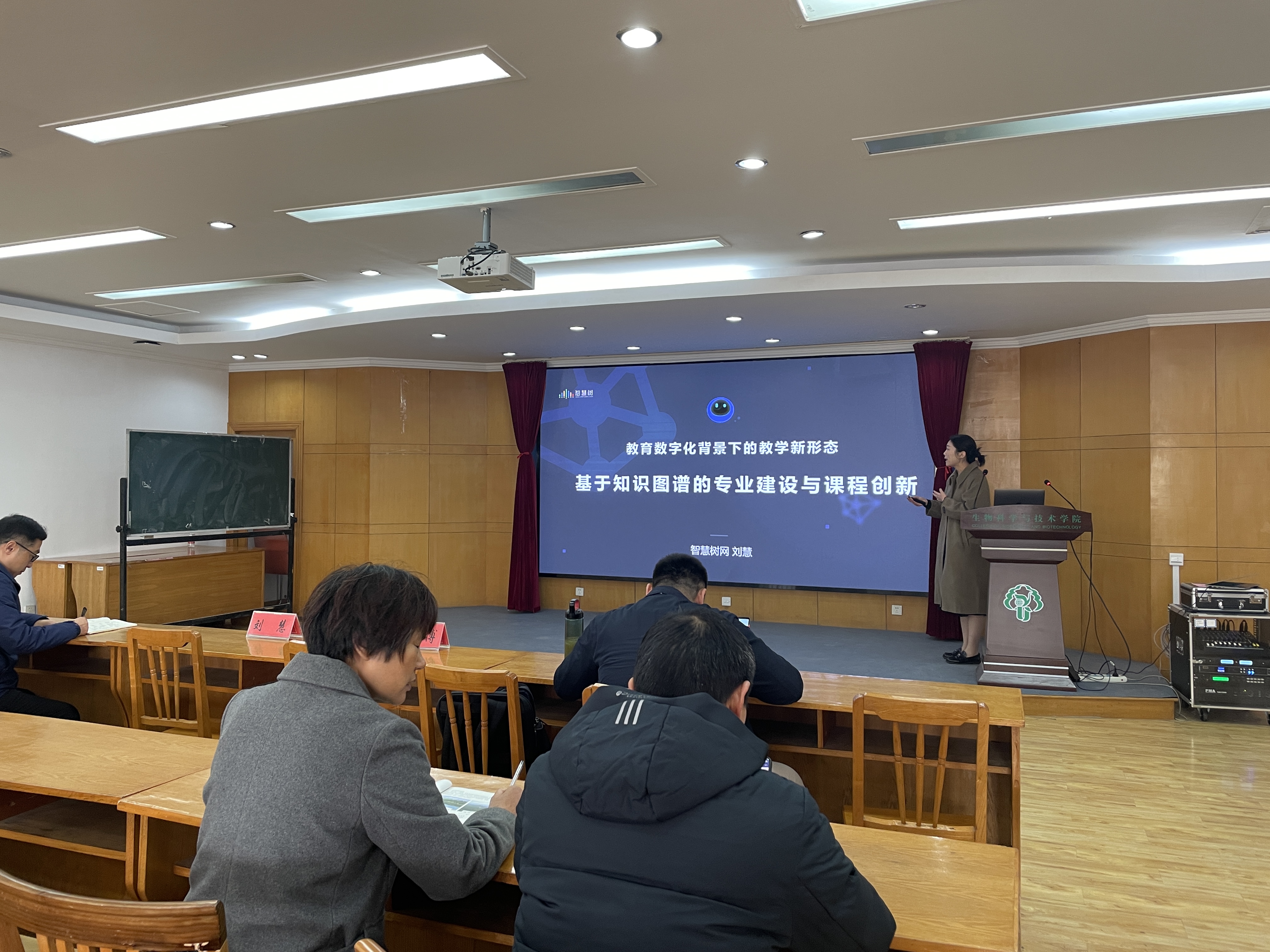 会上,刘慧从知识图谱建设相关政策解读、时代背景、如何理解课程知识图谱、课程和专业建设的独特性、具体的建设流程和相应的标准、建设完成后又该如何促进其在教学场景的个性化应用等方面给老师们做了分享,并介绍了知识图谱的不同案例模式、知识图谱和知识点的建设逻辑关系、学生如何实现个性化的学习资源和学习路径,并就老师们关心的课程知识图谱、专业知识图谱建设及应用等问题做了解答。