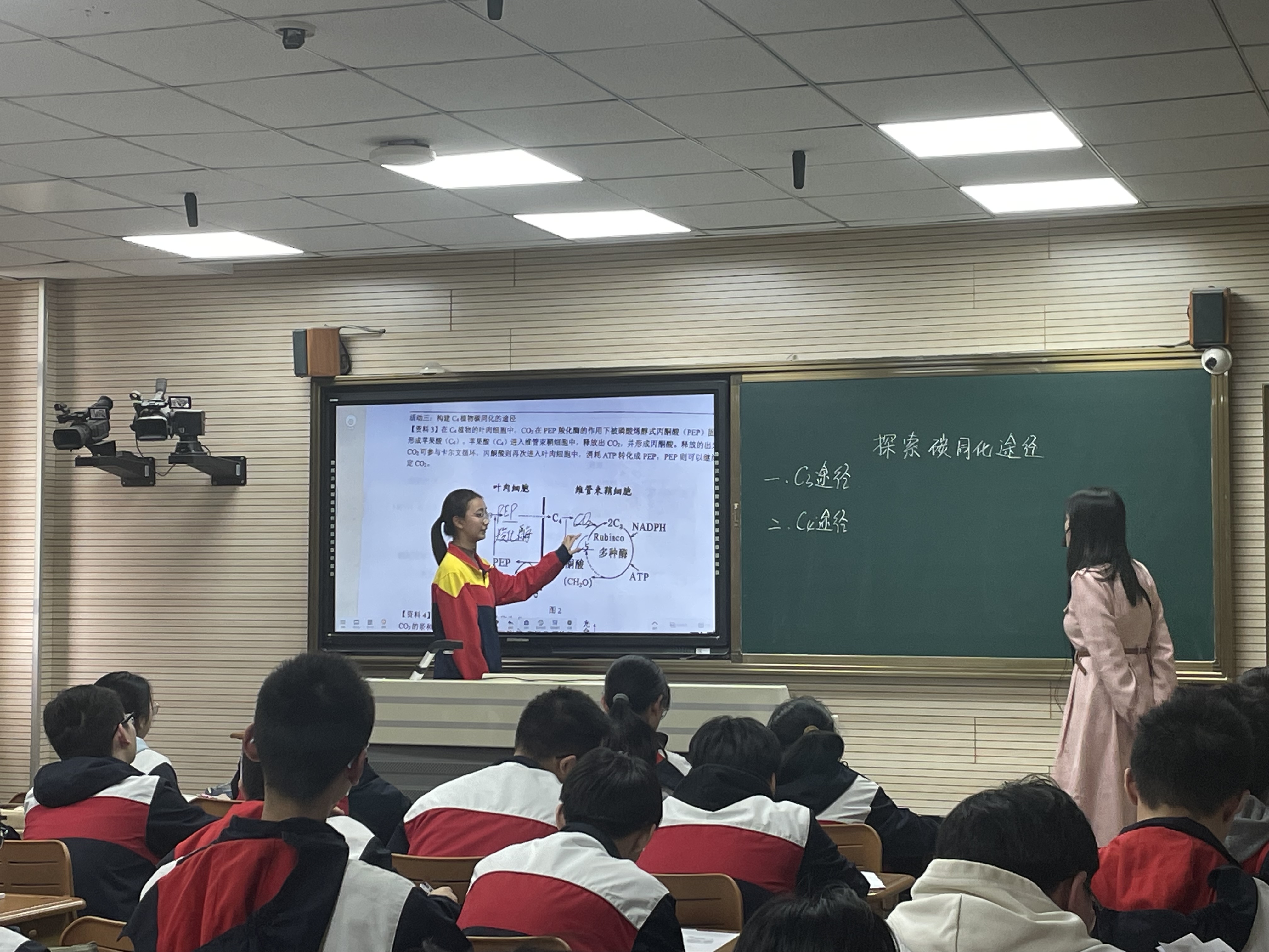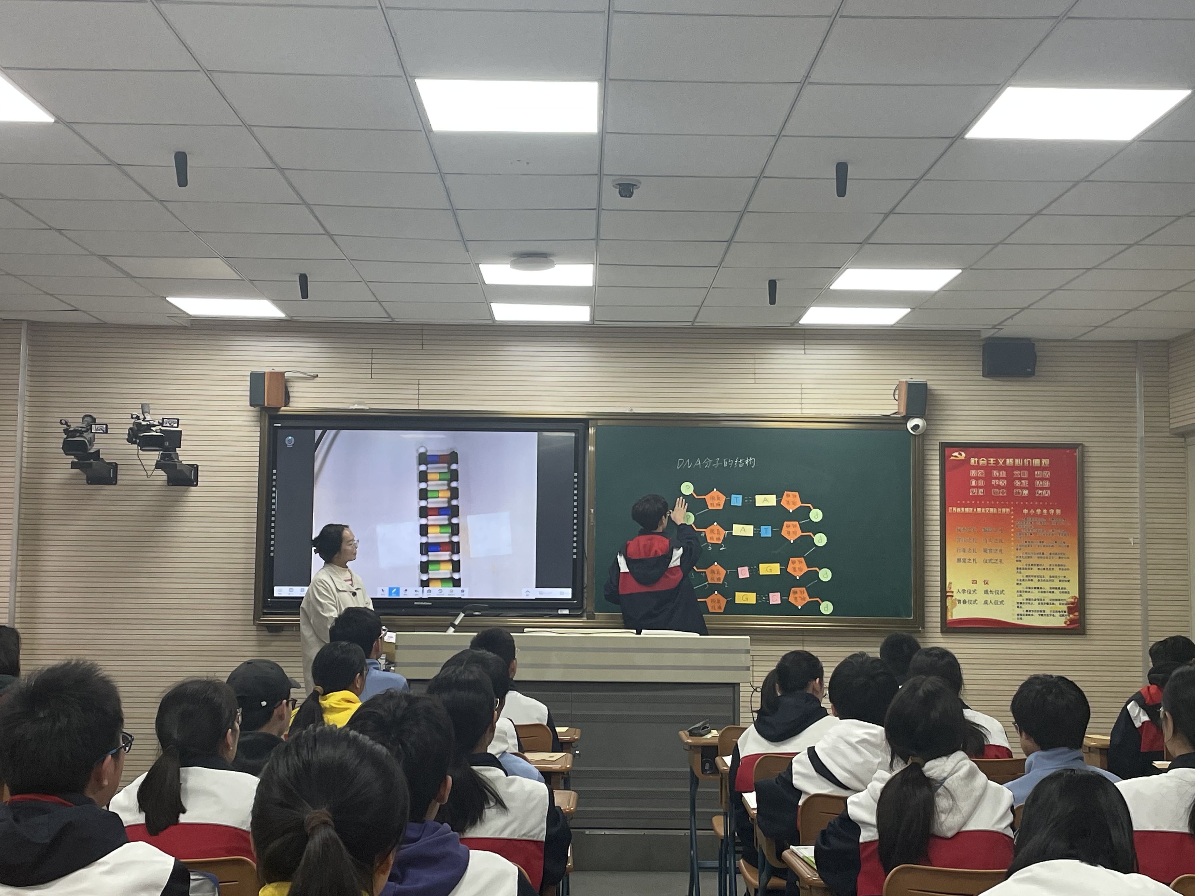 2025年3月27日下午,我院2023级学科教学(生物)硕士研究生代表董欣仪、李心仪、王蕾以及生物科学(师范)专业本科生代表薛方宇、冯康、王雨洁参加了扬州市生物教研站在扬州大学附属中学举办的高中生物学科教研活动。本次教研活动包括青年教师公开课和试题分析讲座两个模块。