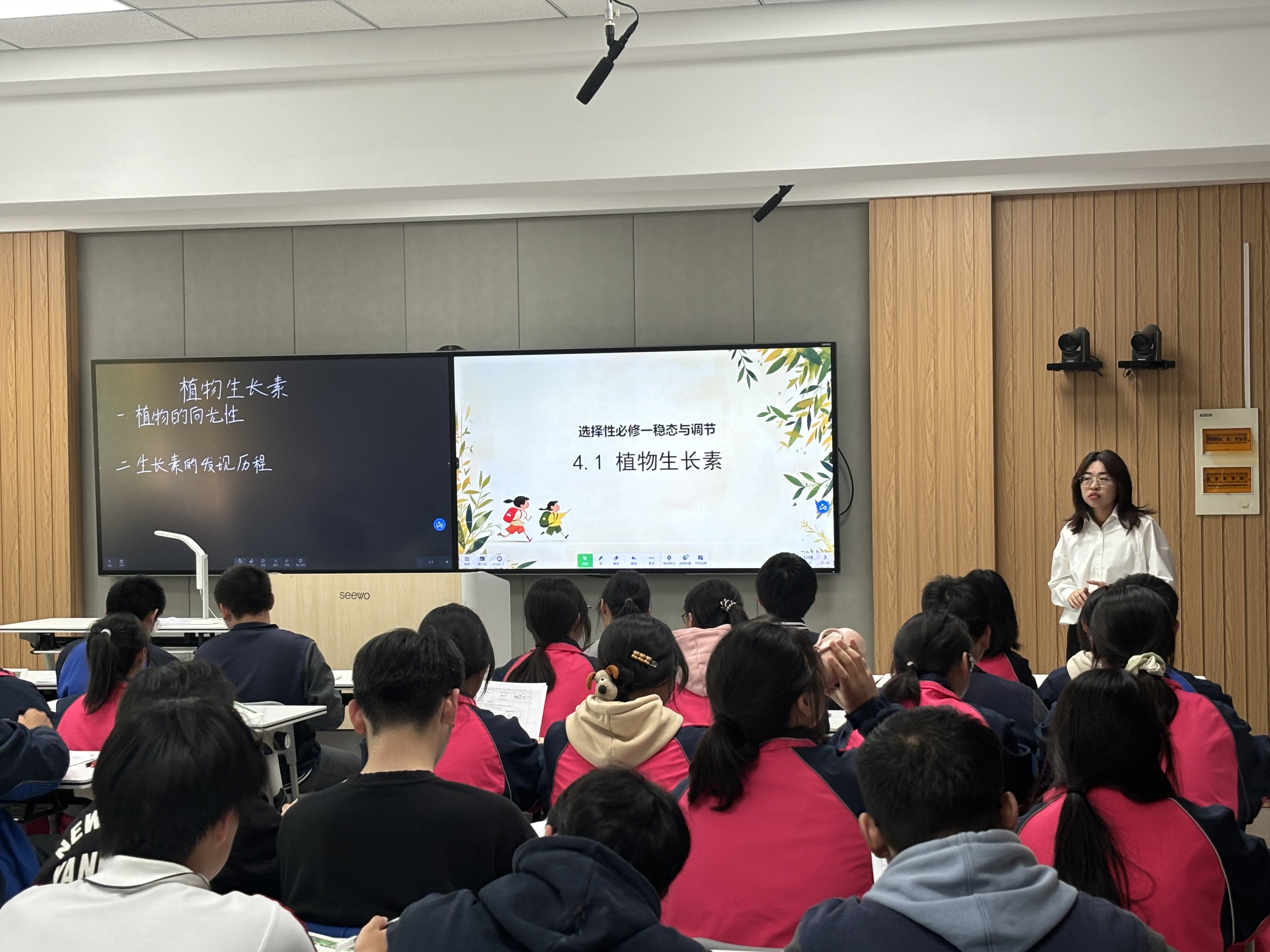 生物科学师范生们观摩了扬州市第一中学高中生物学青年教师杨思博老师面向高二学生开设的“植物生长素的发现”一节课的教学过程。通过本节课的课堂观摩,师范生们了解了如何从植物向光弯曲生长的现象导入新课;在新课讲授环节,杨思博老师采用探究教学策略,为学生提供了多种实验材料,引导学生探究了胚芽鞘的感光部位、证明了胚芽鞘尖端产生的“影响”在其下部分布不均导致弯曲生长等,充分发挥了学生的学习主动性。在探究过程中,杨思博老师巧妙地引入了科学史资料,补充了达尔文的向光性实验、鲍森·詹森的实验、拜尔的实验以及温特的真实实验结果。杨思博老师为师范生们今后在课堂上开展科学探究活动提供了教学参考。