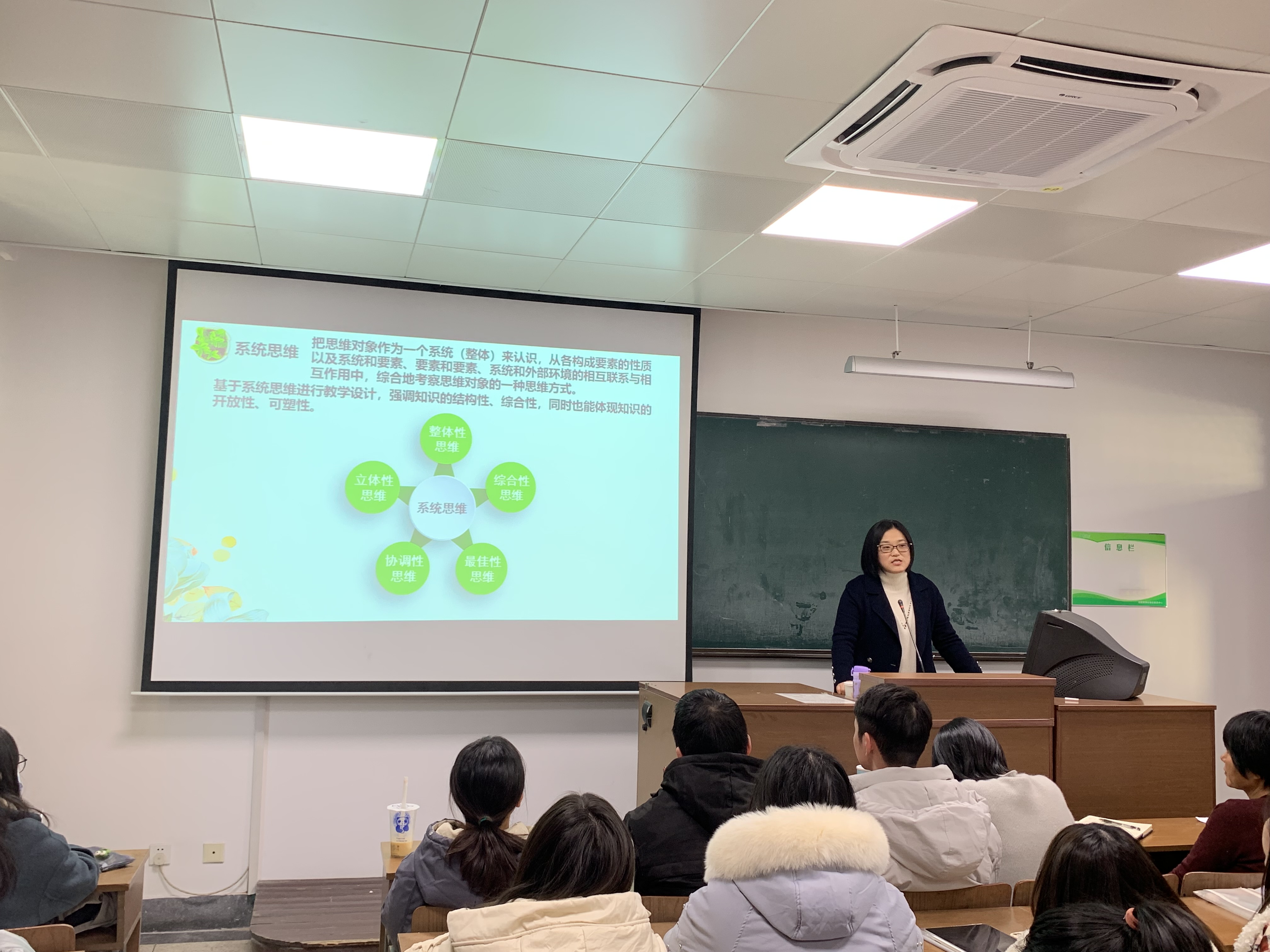 1227号下午14:00,我院在荷花池校区E323教室成功举办生物科学(师范)专业教育讲座。本次讲座邀请了扬州中学高级教师胡有红老师来为我院2019级生物科学(师范)专业学生开展中学生物学教学设计、科学思维提升等方面的讲座,会议由我院学科教学教研室长吴晓霞老师主持,教研室成员参加了会议。