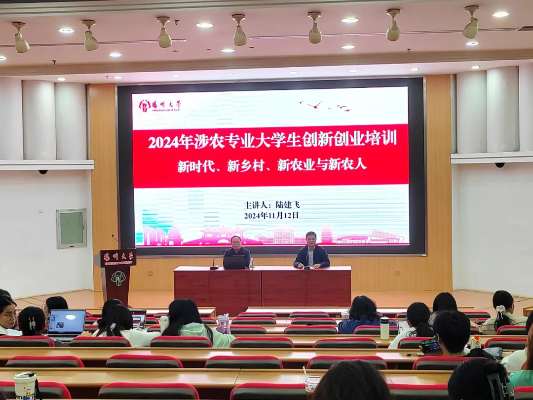 11月12日上午,扬州大学乡村振兴战略研究院常务副院长陆建飞老师以“水稻和麦苗的交流”为题,激励广大涉农专业学生坚定“学农爱农”信念,增强核心竞争能力,为我国农业现代化贡献力量,成为国家需要的“新农人”。