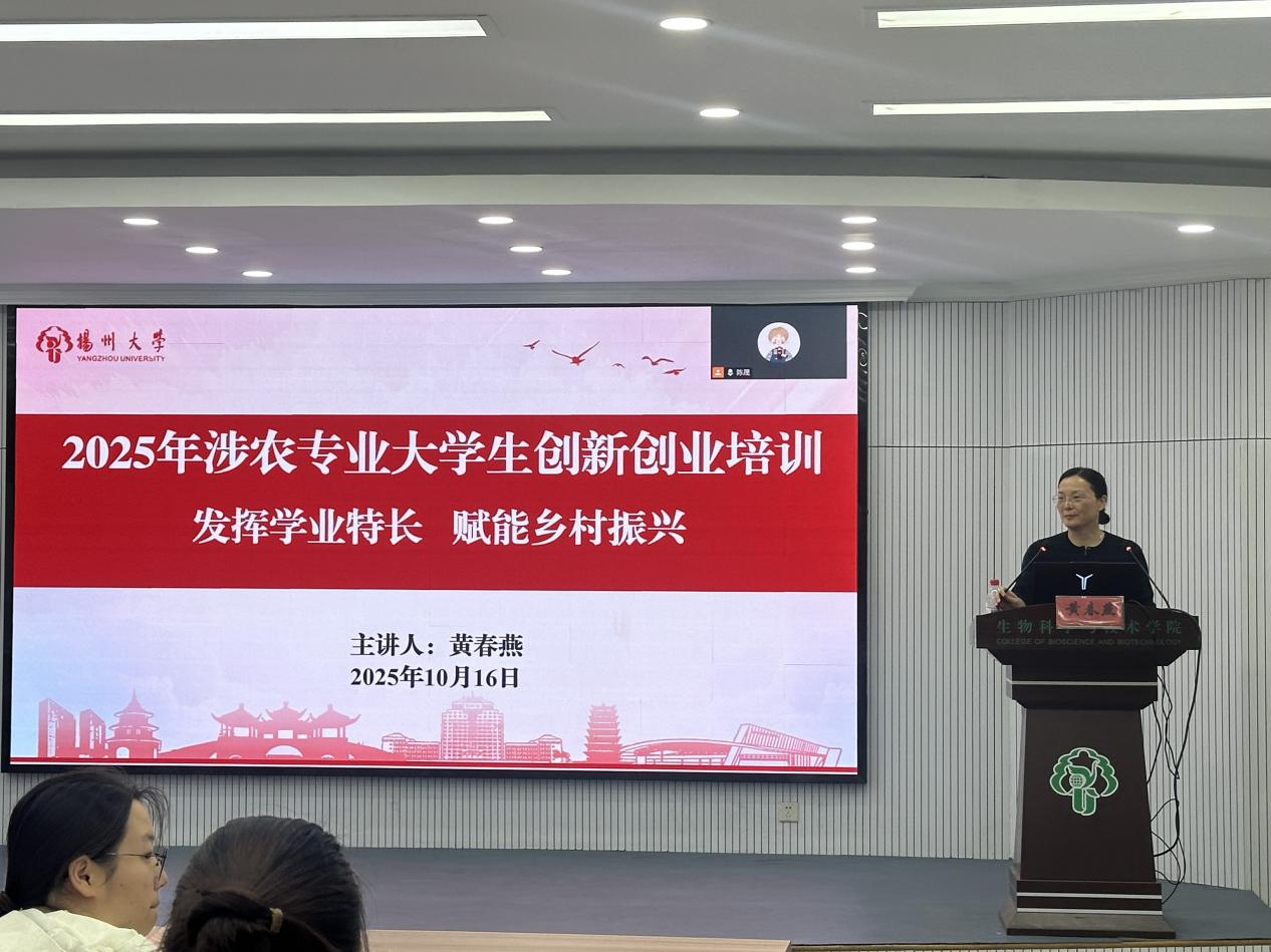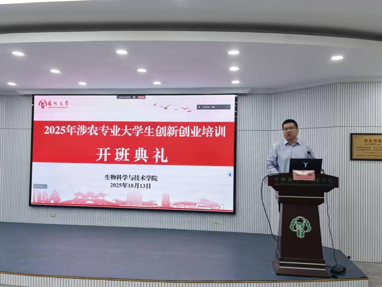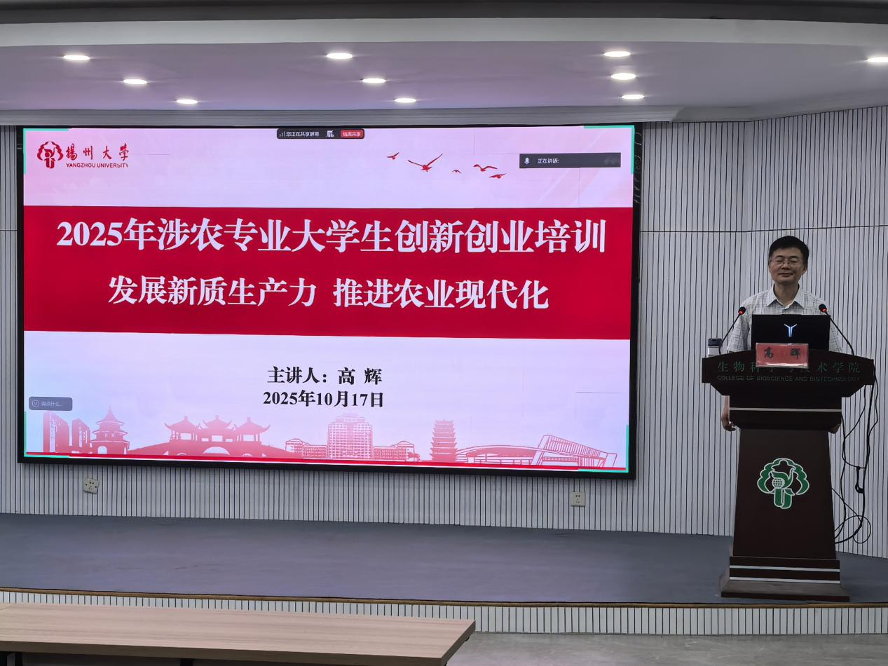 为深入贯彻落实2025年中央一号文件精神,积极服务国家乡村振兴战略大局,扬州大学生物科学与技术学院于近期成功举办“2025年涉农专业大学生创新创业培训”。本次培训聚焦生物技术与生物制药专业大四学生,创新构建“政策解读+技术赋能+实战淬炼”三维育人体系,为116名学子搭建起融入“三农”、服务产业、建功立业的成长平台,助力培养“懂技术、有能力、爱农业、会经营”的高素质复合型人才。
