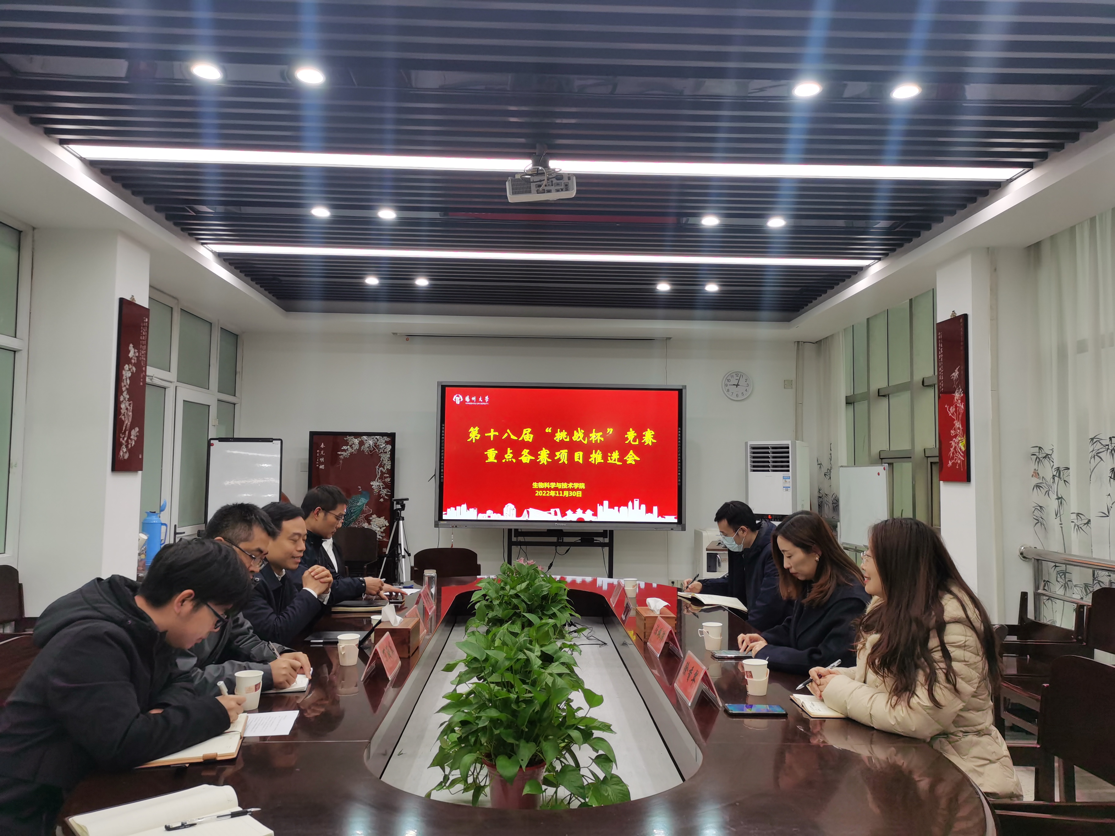 我院召开第十八届“挑战杯”竞赛重点备赛项目推进会,校团委书记陈佩沛、校团委副书记徐香翠、校团委办公室主任魏源莅临指导,院党委书记陆江峰、党委副书记廖善光、项目指导老师等共同参会。会上,团队成员对目前项目进展进行汇报,陈佩沛书记从项目的研究背景、进展情况、成果产出等方面给出了针对性的指导和建议,对下一步工作开展提出了明确的要求。