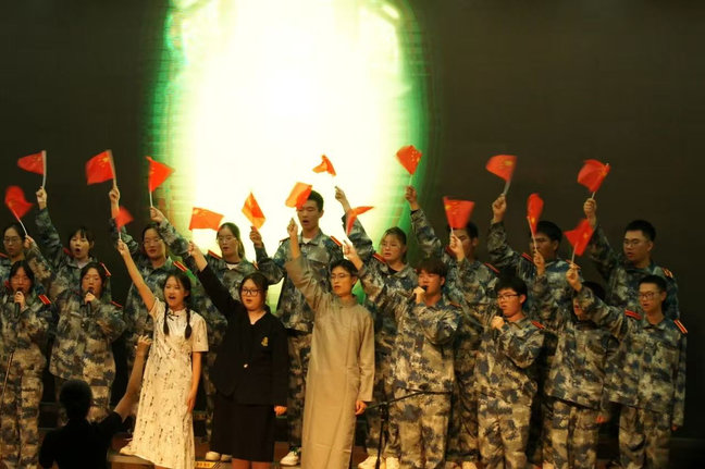 “扬州大学,通州溯源…”比赛现场,新生同学们身着军装,用嘹亮的歌喉唱响了青春的旋律,展现了爱校荣校情怀,各个班级使出浑身解数,用创意的表演体现对校歌的独特理解和深情演绎。