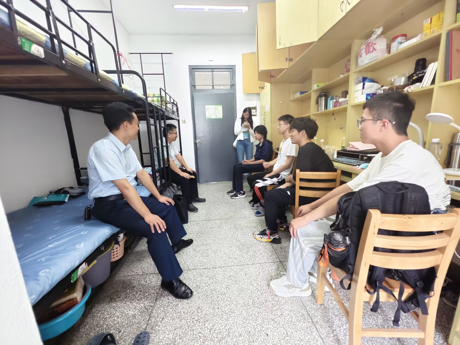 9月2日晚7:00,生科学院党委书记陆江峰、院长黄金林、党委副书记廖善光、副院长陈祥、高勇,分别带领辅导员、班主任老师走进新生宿舍看望2023级新生。