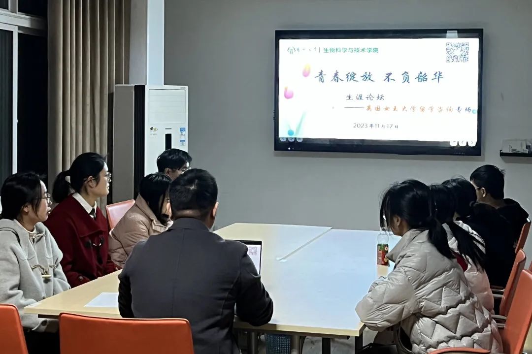 11月17日晚,我院关于举办“青春绽放 不负韶华”生涯论坛,开展有关英国女王大学留学咨询专题讲座,本次论坛由陈晟老师主持,来自女王大学的陈天豹教授和马成帮博士担任宣讲嘉宾,帮助学生了解留学相关信息。