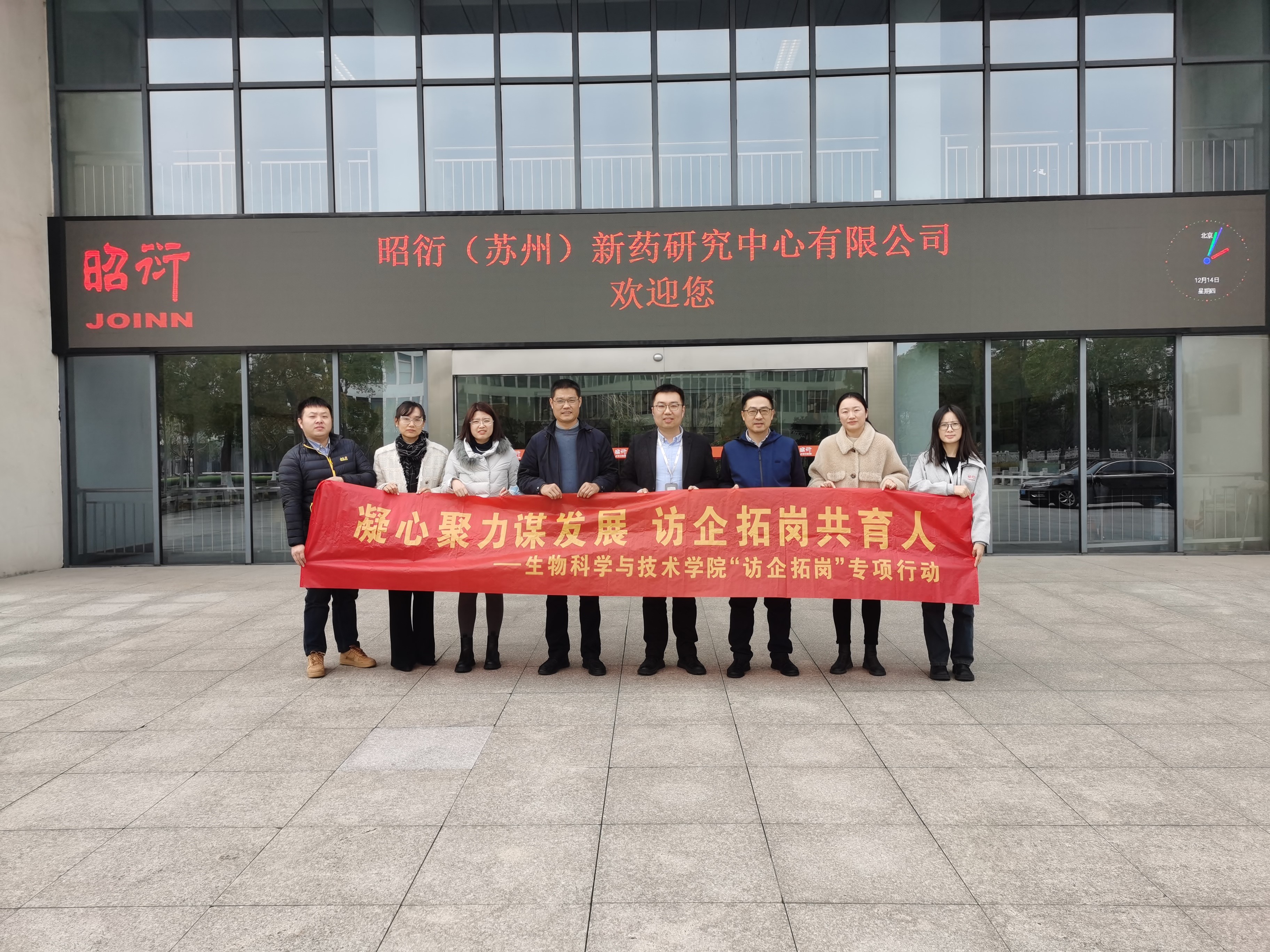 2023年12月13日—14日,院党委副书记廖善光、副院长陈祥一行赴太仓市生物医药产业园和校友企业江苏美科生物科技有限公司、苏州双洳生物科技有限公司调研交流,进行访企拓岗专项行动。
