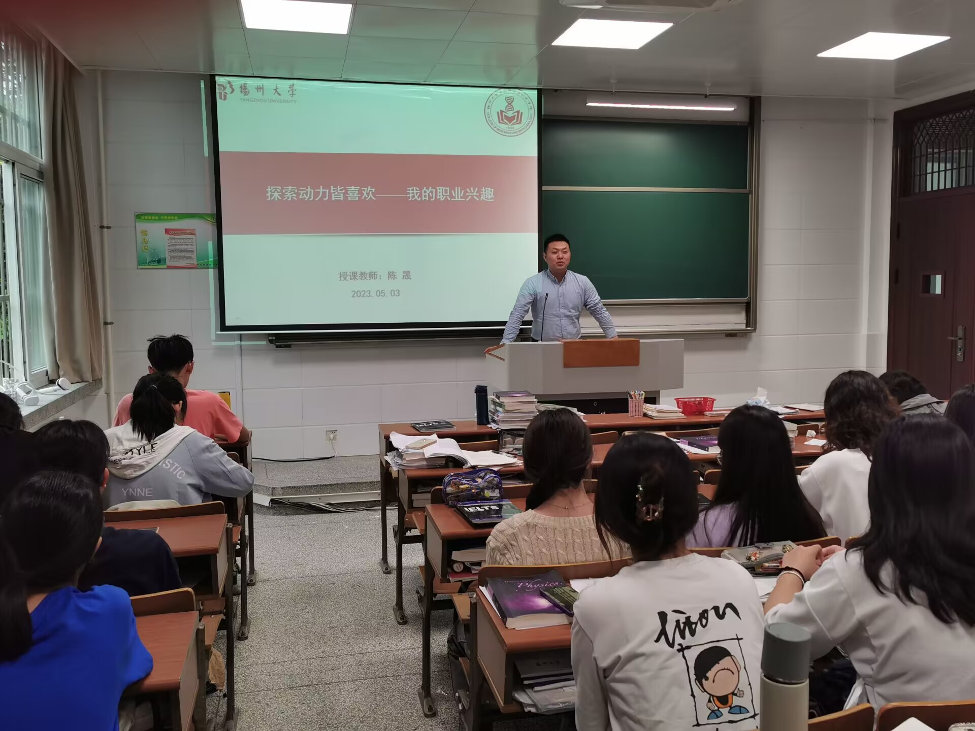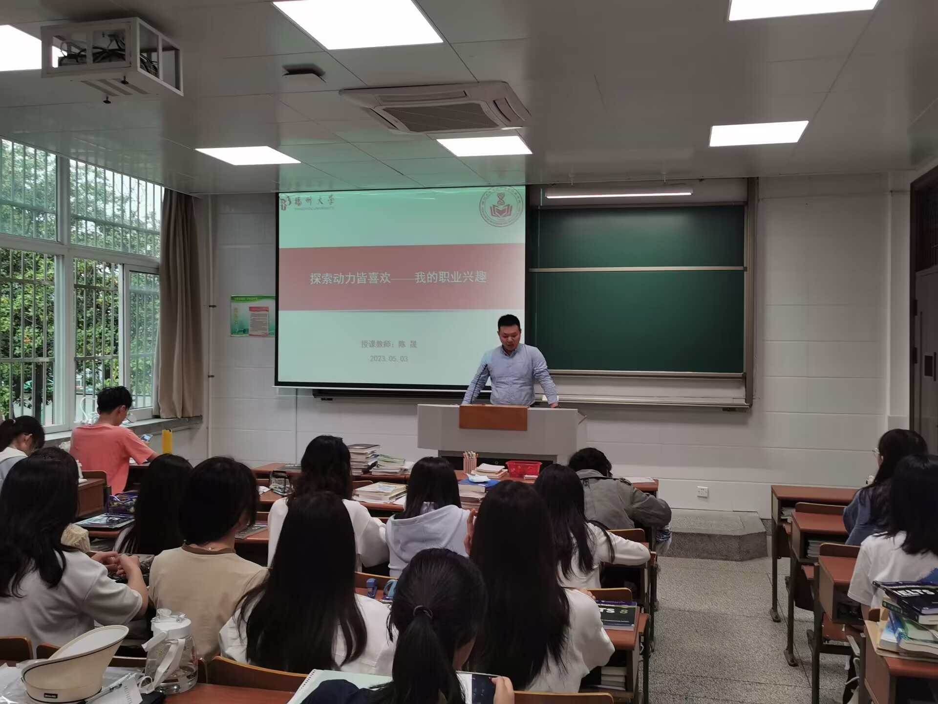 2023年5月3日下午3时许,我院在23号楼教室开展大学生就业创业实训活动,本次活动由团委陈晟老师主讲,我院22级学生参与,本次活动的主题是探索动力皆喜欢——我的职业兴趣,活动现场氛围热烈,同学们收获满满。