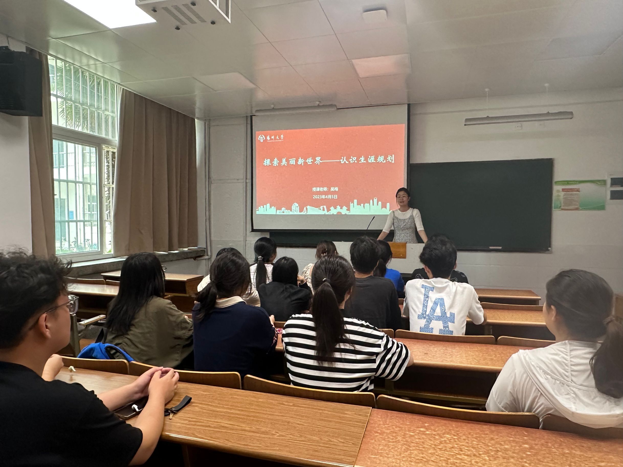 2023年4月5日,我院在23号楼教室开展大学生就业创业辅导活动,本次活动由团委吴梅老师主讲,我院22级学生参与,本次活动的主题是探索美丽新世界——认识生涯规划,本次活动旨在唤醒同学们生涯规划的意识,合理规划大学时间。