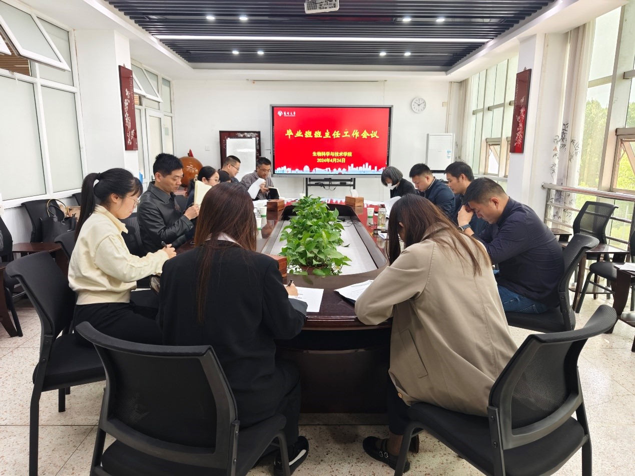 2024年4月24日,生物科学与技术学院在8号楼会议室召开毕业生班主任工作会议,党委副书记廖善光主持会议,毕业班班主任、全体辅导员参加。